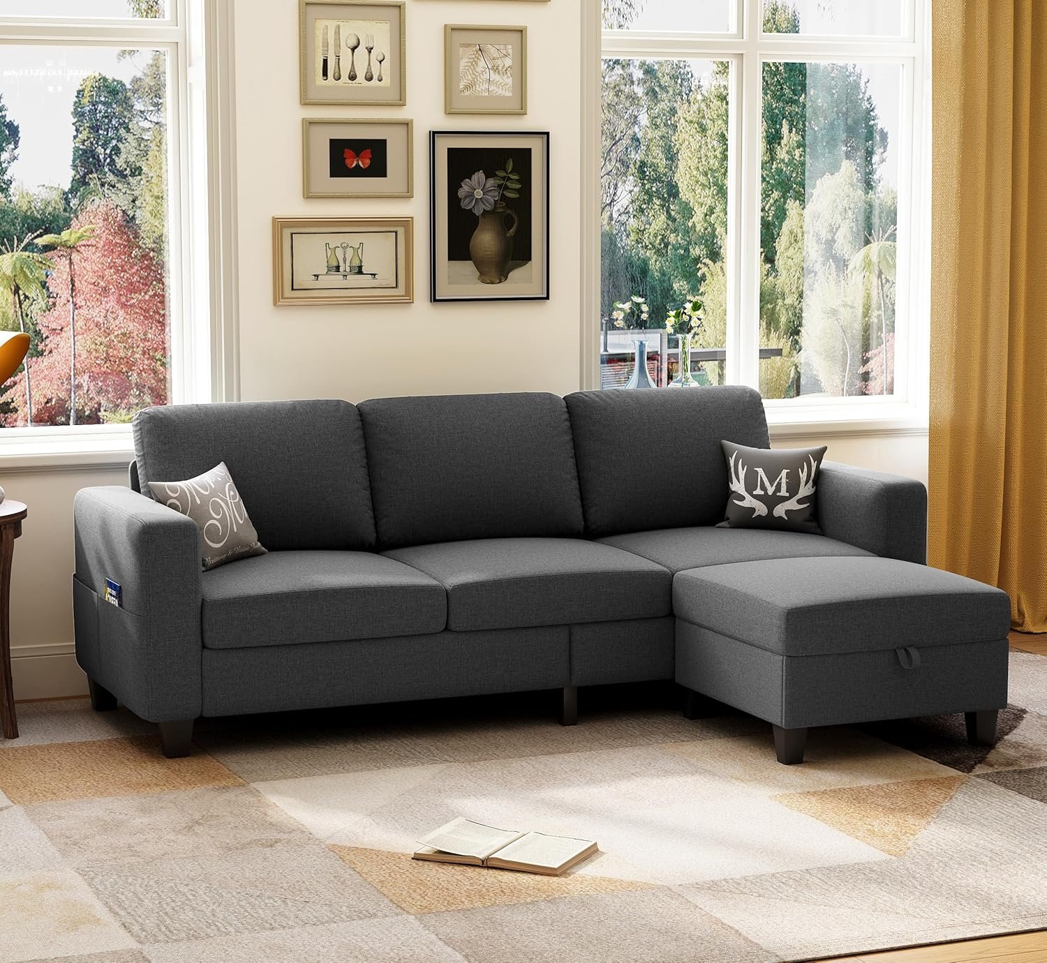 4 reviews for Sectional Sofa Couches for Living Room, 78” Dark Grey 3 Seater L-Shaped Couch with Storage Ottoman, Comfy Fabric Convertible Sectionals Sofas with Chaise for Apartment, Office, Small Space