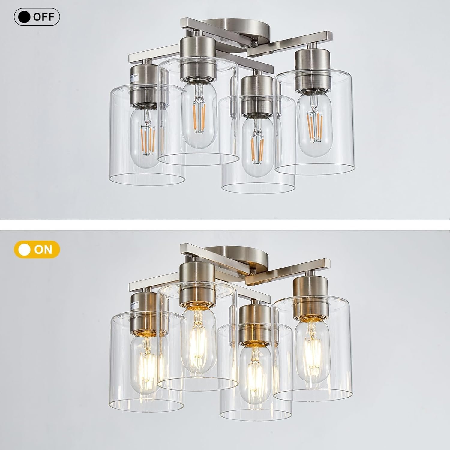 Semi Flush Mount Ceiling Light Kitchen Lighting Fixtures Ceiling Brushed Nickel Kitchen Cieling Light Fixtures with Clear Glass Shade for Dining Room Bedroom Living Room Hallway E26 Scoket