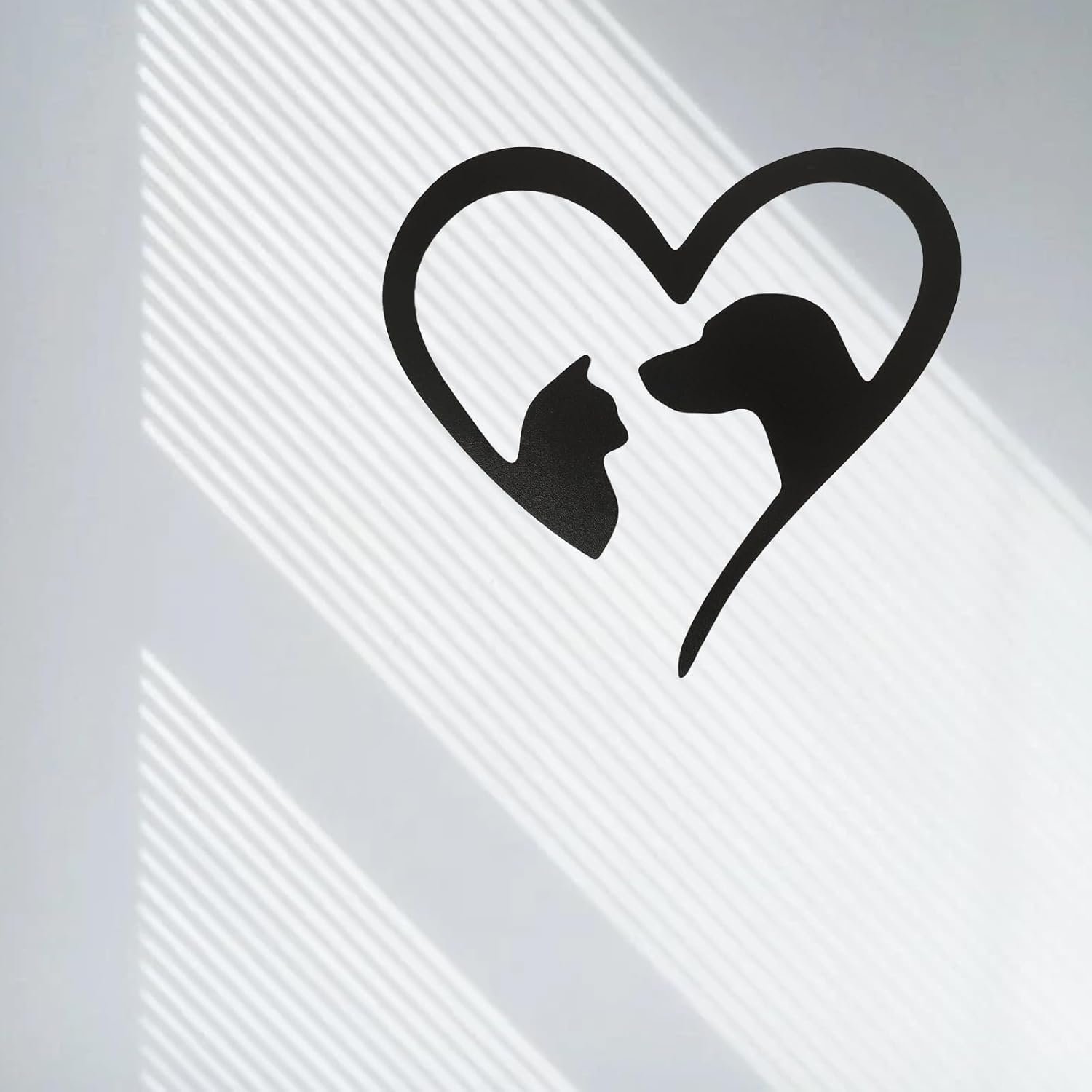 This metal sculpture is an adorable addition to my collection of dog and cat wall art. It’s really nice quality and feels sturdy.It was easy to hang, and the matte black finish goes with any decor.