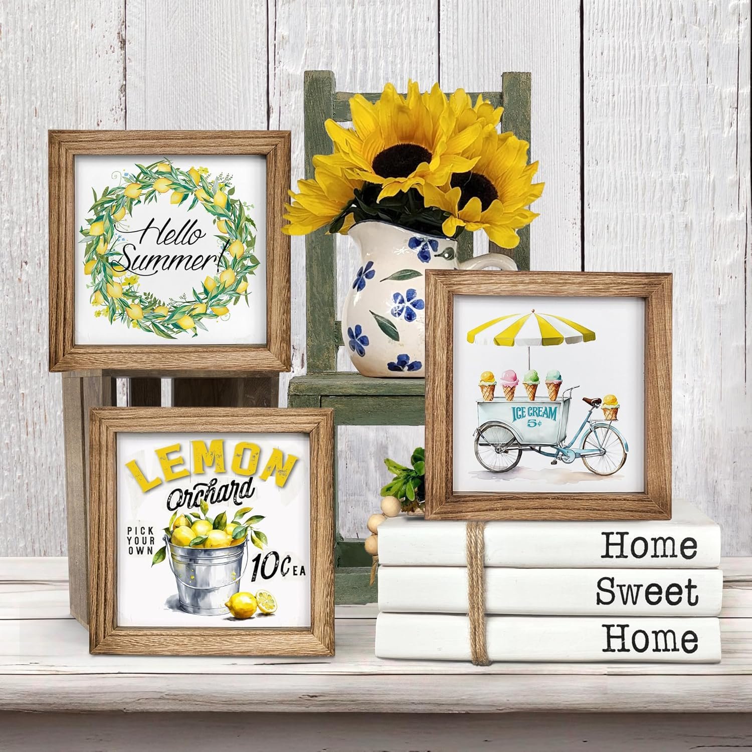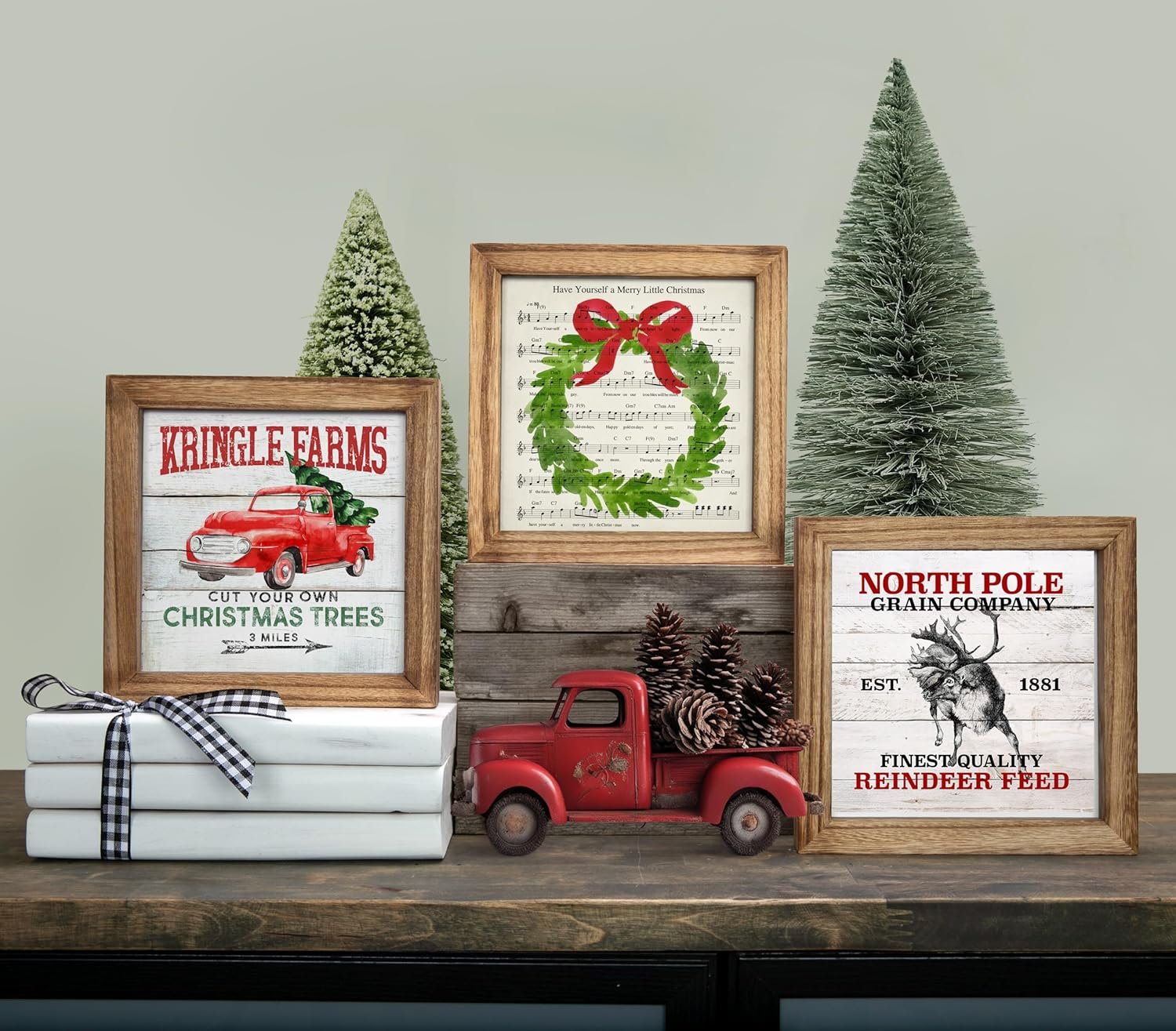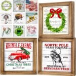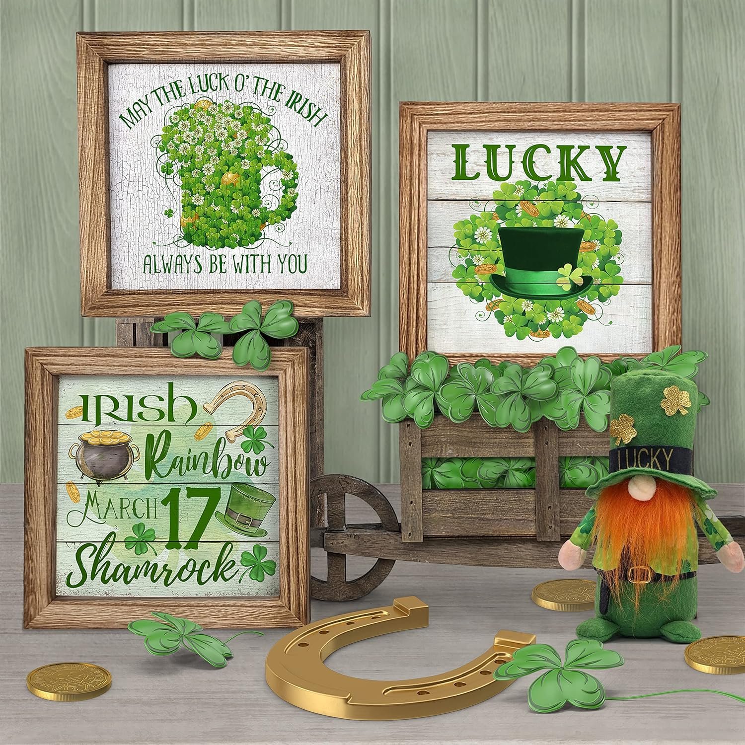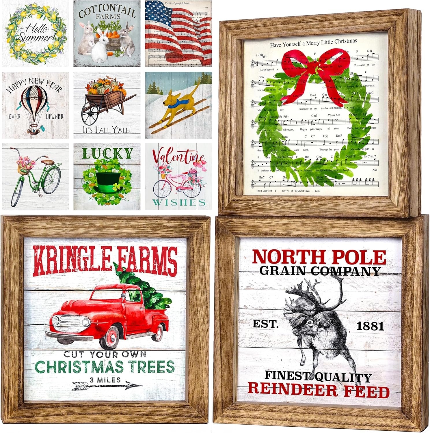 Set of 3 Rustic Wood Frames for Tiered Tray Decor – 36 Interchangeable Seasonal Home Signs for Valentines, St Patrick’s Day, All Seasons, 7×7 in