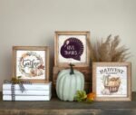 Bought these before Thanksgiving and absolutely love them! They stand nicely and I love the different placards for all the holidays and that each are double sided! The placard not in use fit nicely in the middle of the ones on display and really fit the farmhouse theme of our home. Will be using them all year long, very much money well spent 🙂
