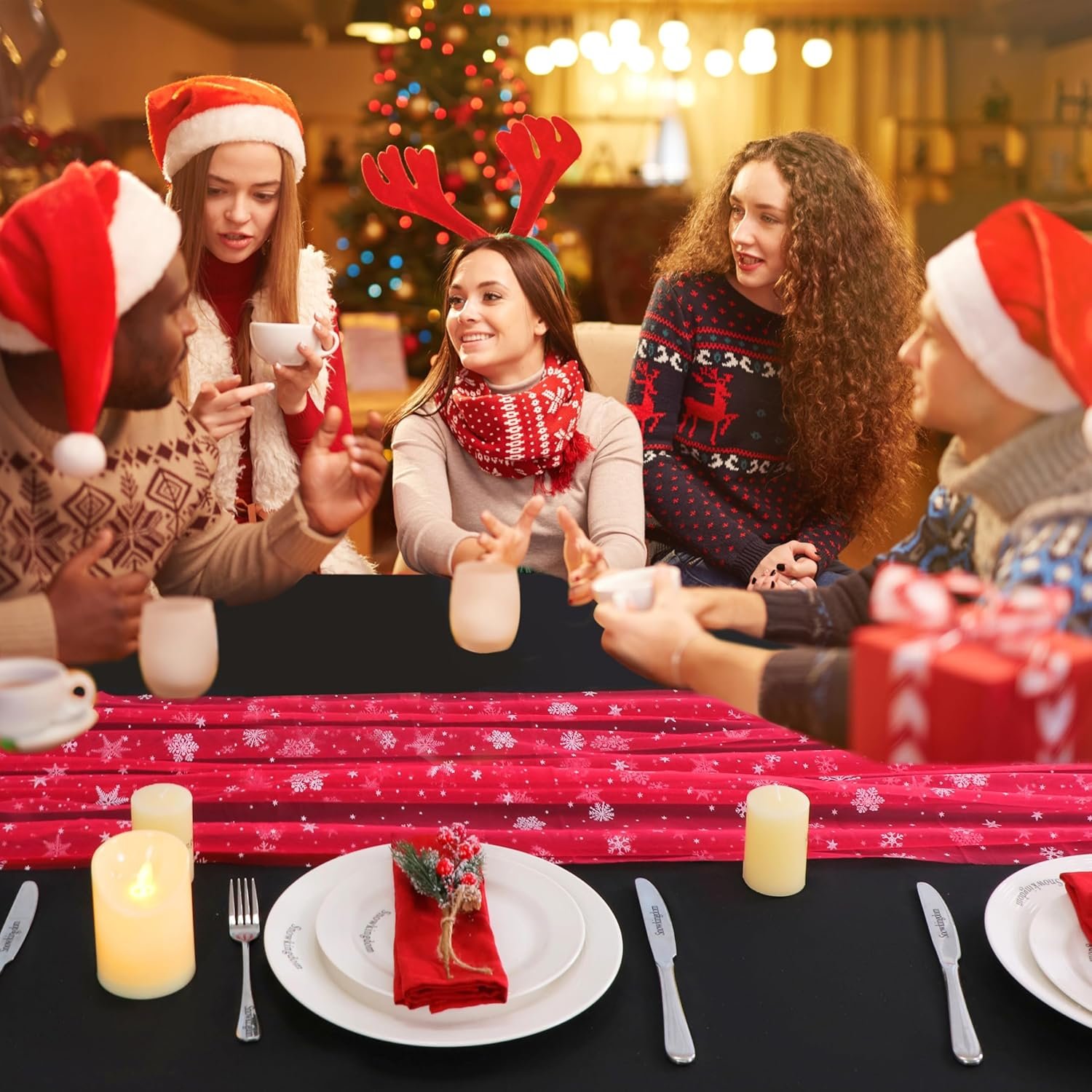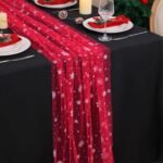 9 reviews for Snowkingdom Red Christmas Table Runner, Red and White Snowflakes Cheesecloth Table Runner, Chiffon Gauze Seasonal Winter Kitchen Dining Decorations for New Year Home Party Decor 120 Inch