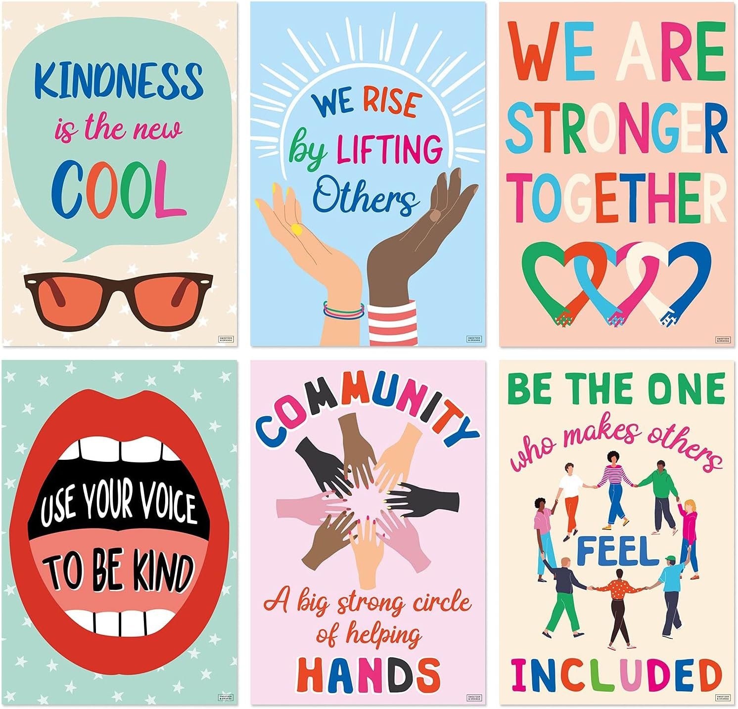 S&O Kindness Posters for Classroom Decorations 6 Pack, 15 x 22” Large Poster Bundle, Growth Mindset and Motivational Wall Art for Bulletin Board, Inspirational Quotes, Affirmation and Positive Banner