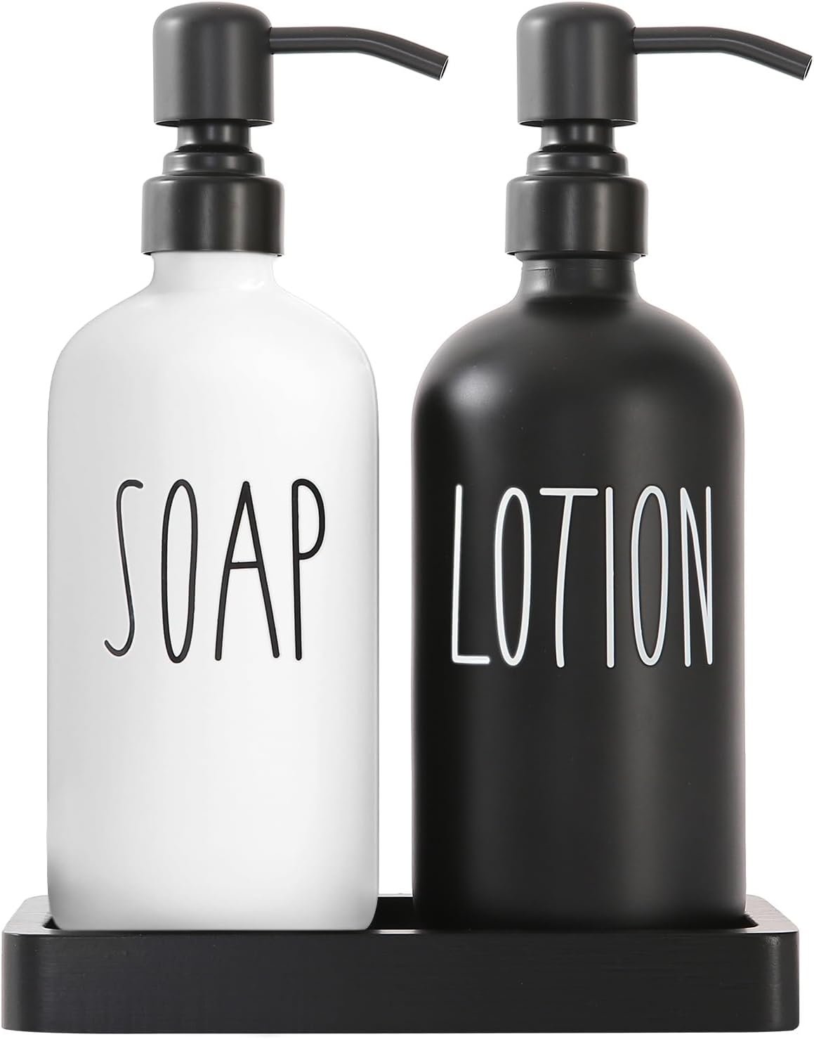 Soap Dispenser Set, Bathroom Countertop Soap Dispensers with Stainless Steel Pump, Perfect for Black and White Bathroom Decor. (Black & White)