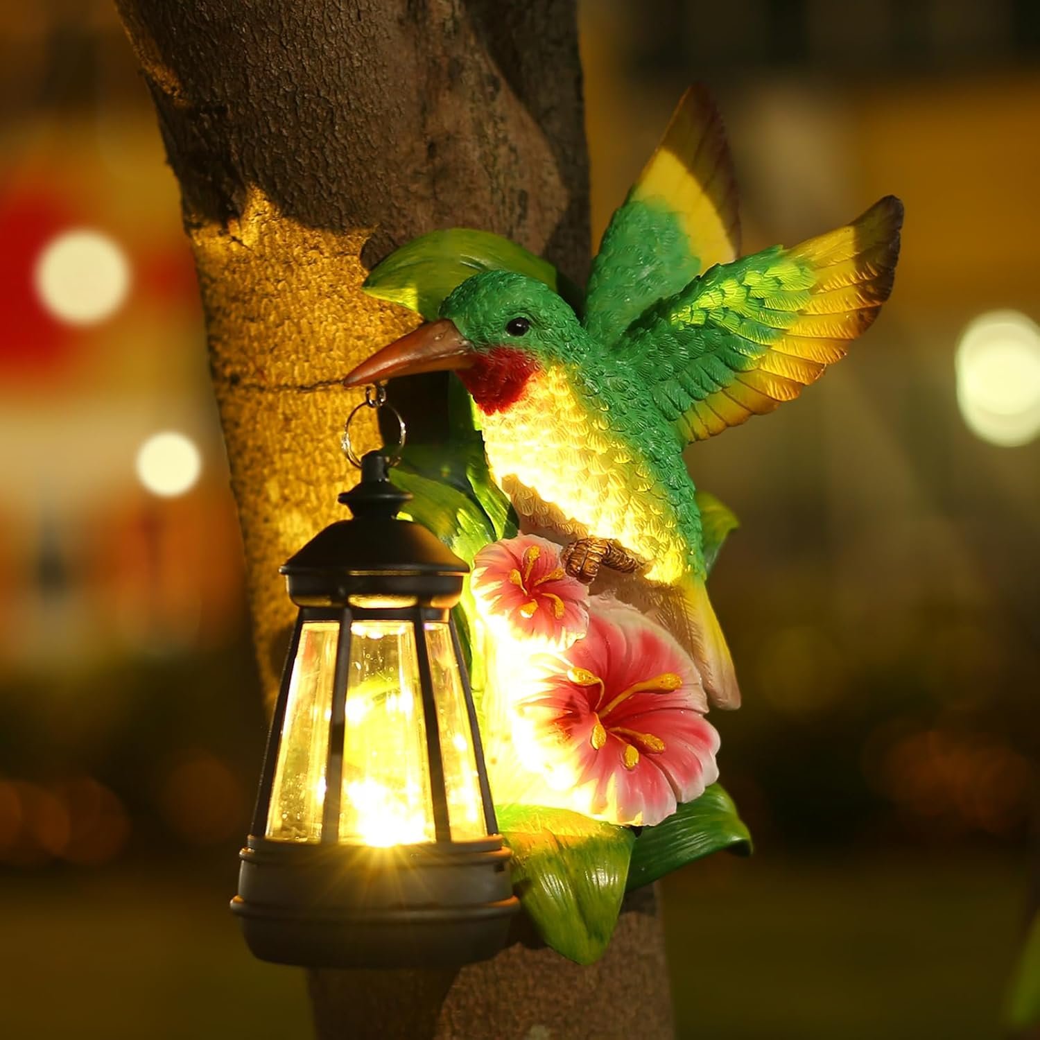 Solar Garden Outdoor Decor Hummingbird Statues, Hummingbird Solar Lights Garden Decor for Outside Yard Tree Wall Gate Balcony, Unique Gifts for Women Mom