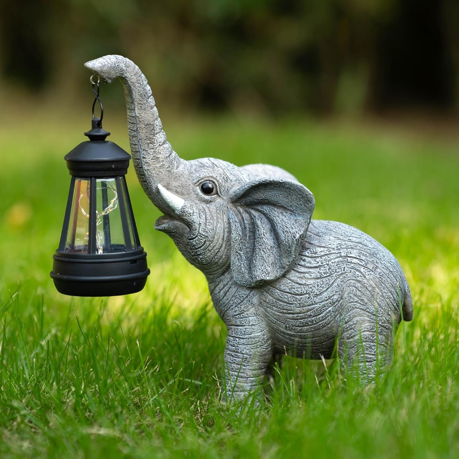 Solar Garden Statue Lights Elephants Figurine with Solar Lantern, Outdoor Yard Decorations for Patio Porch Home, Christmas Elephant Gifts for Women – Unique Housewarming Gifts
