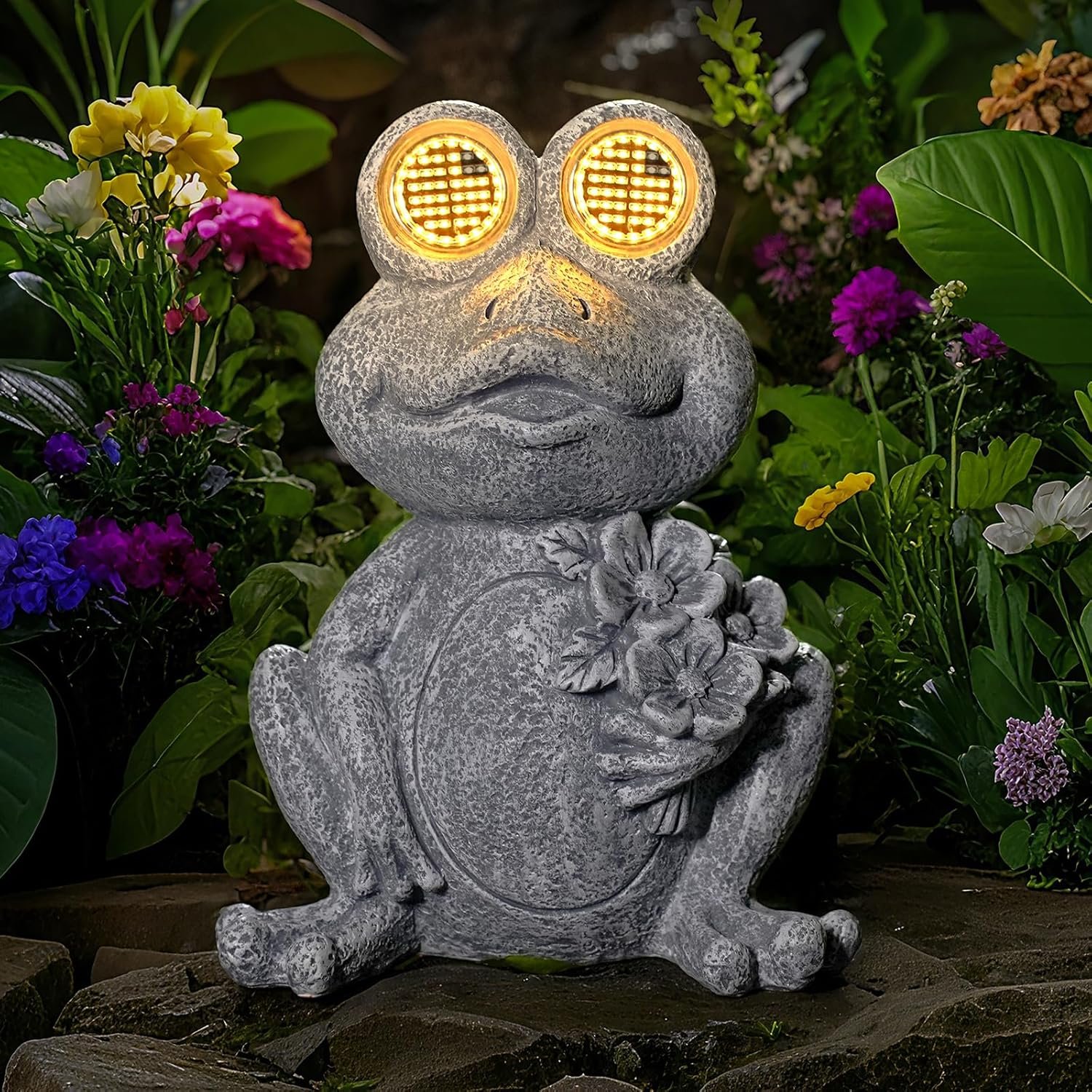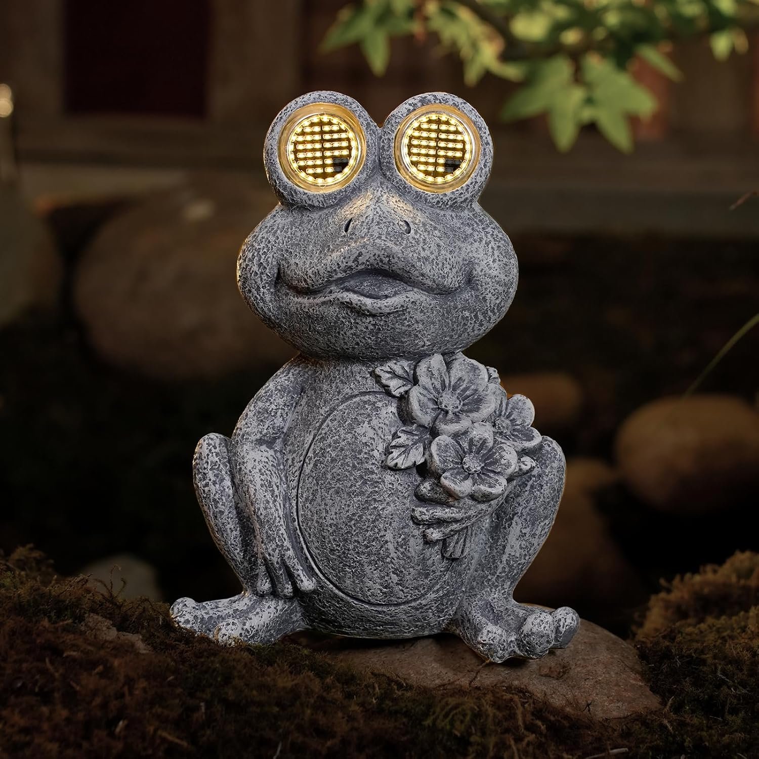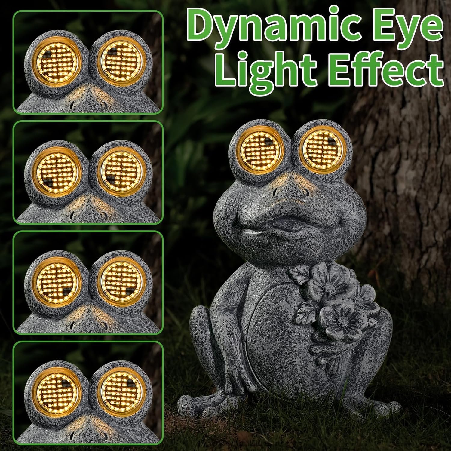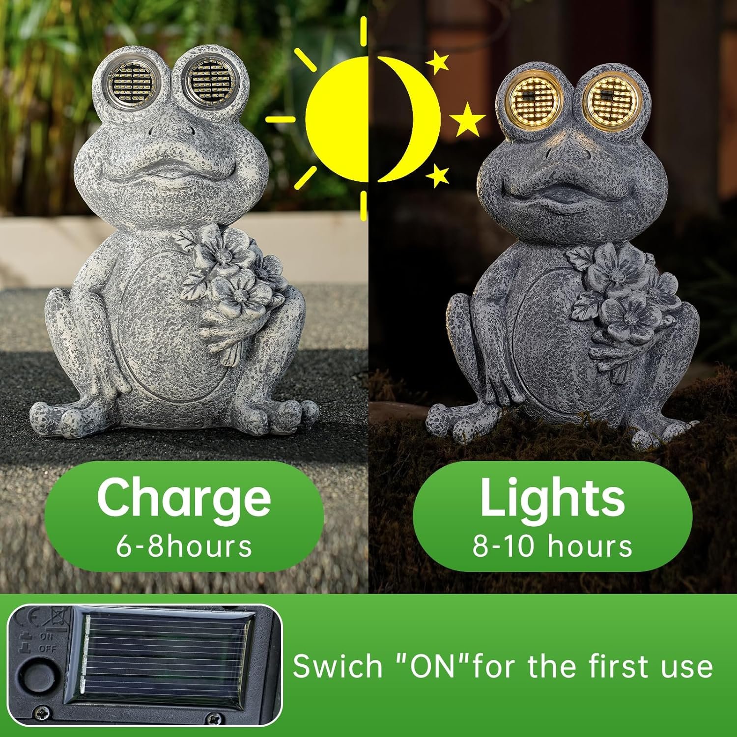 Solar Powered Frog Statue Lights, Frog Figurines Outdoor Garden Decor, Outdoor Patio Decor, Patio Porch Lawn Backyard Decor, Gardening Birthday Gifts for Daughters and Moms
