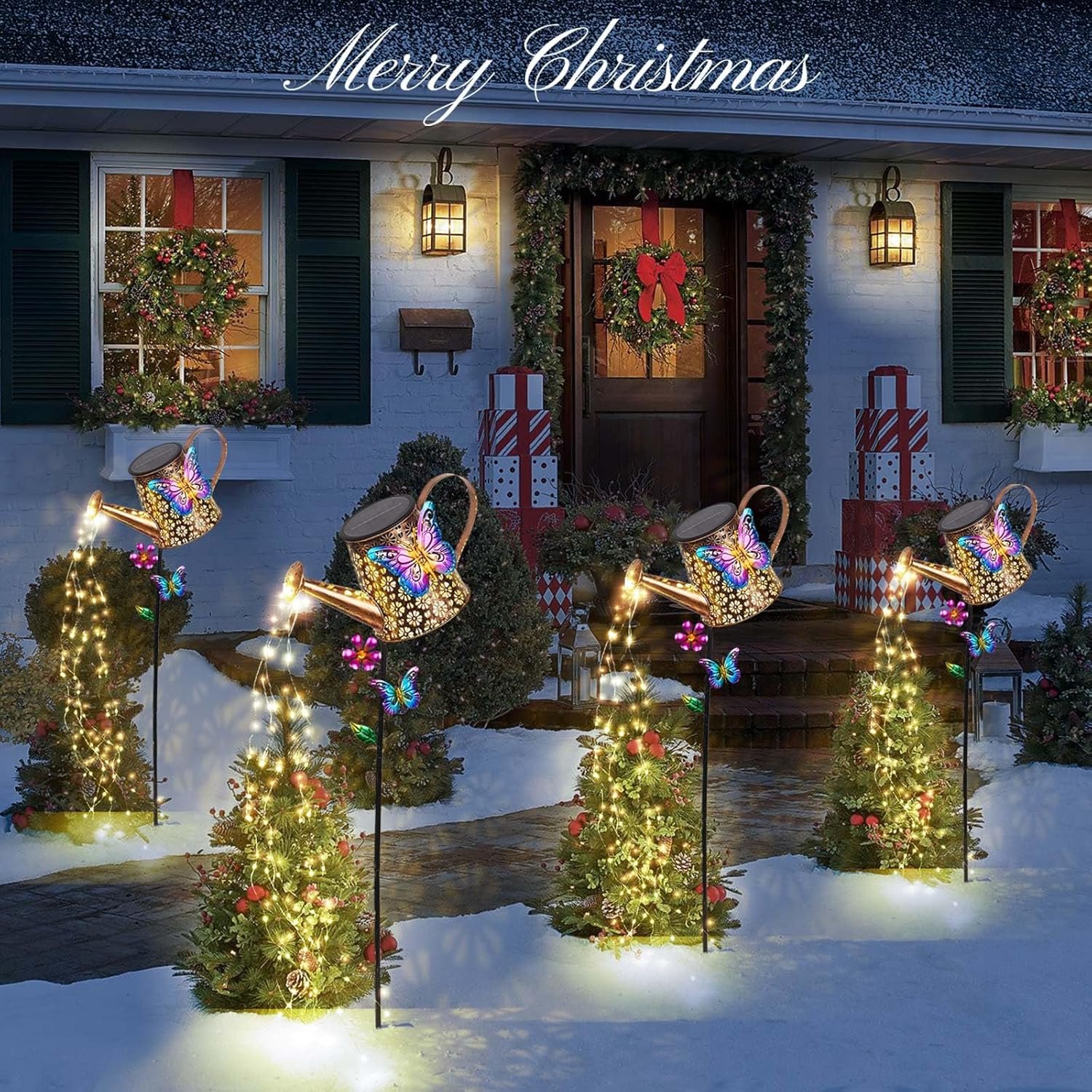 This solar light watering can is even prettier than the picture. We’ve received compliments from our neighbors on how nice it looks, both day and night. So glad we purchased it.
