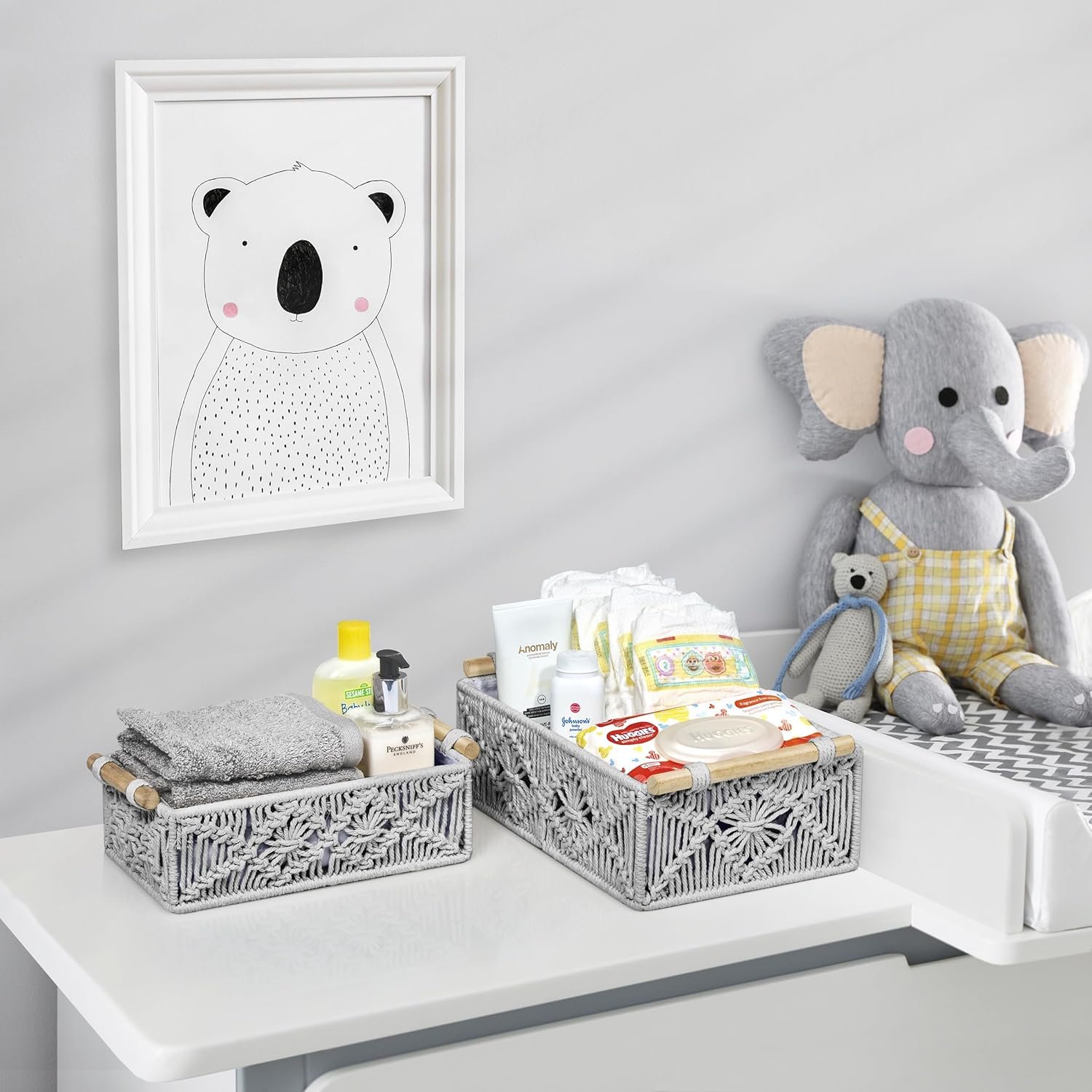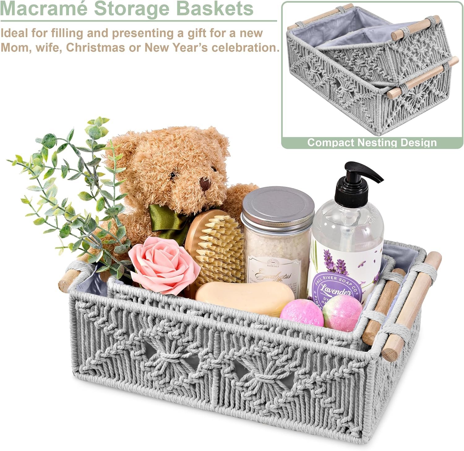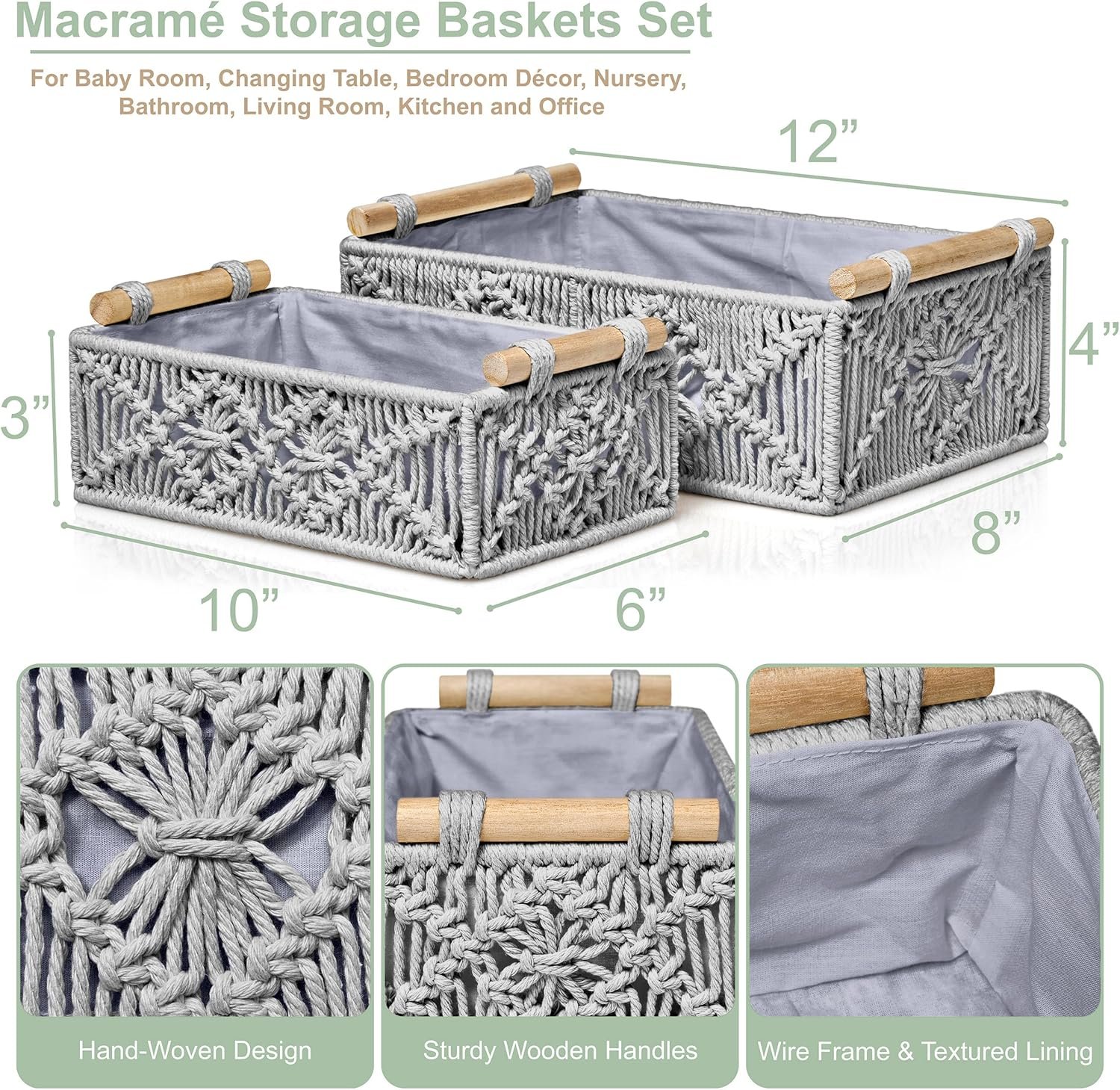 Sorbus Macrame Boho Decor Baskets – 2 Decorative Gift Baskets for Nursery, Baby Room, Toilet Tank Top – Lined Baby Basket Set for Organizing Changing Station, Linens, Clothes, Diapers, Toiletries