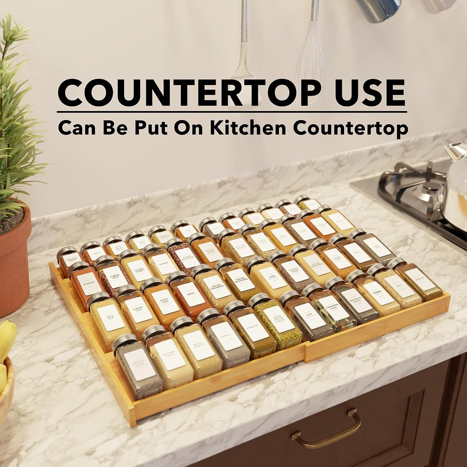 This spice drawer organizer brought my kitchen to life! The bamboo rack paired with the uniform jars and minimalist labels makes everything look so clean and professional. It fits perfectly in the drawer and holds just the right amount of jars for all my go-to spices.Filling and labeling everything was a breeze, and now cooking is way more efficient—I can see everything at a glance. If you’re ready to organize your spice chaos, this is the answer!If I had to complain about one thing, it would be the little drop-off gap on the side. There’s no way to make it completely flush, which slightly throws off the symmetry. Still, it’s a small tradeoff for the overall look and function.
