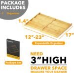 SpaceAid Bamboo Spice Drawer Organizer, (Need 3″ Deep Drawer) Expandable 4 Tier Spices Rack for Cabinet, Kitchen Seasoning Storage Insert (Jars Not Included, From 12″ to 23″ Wide)