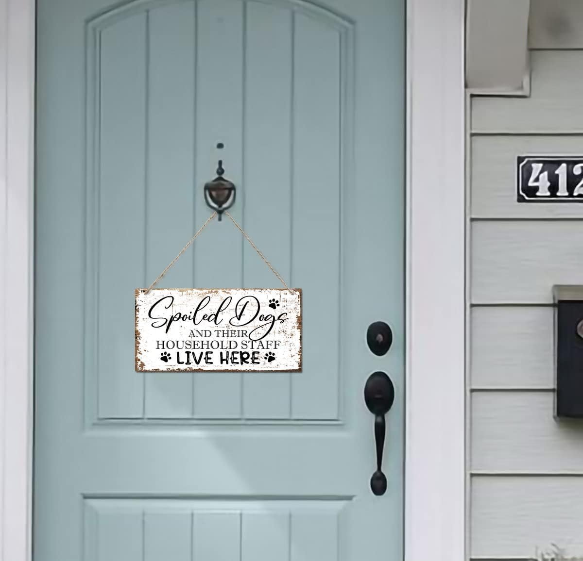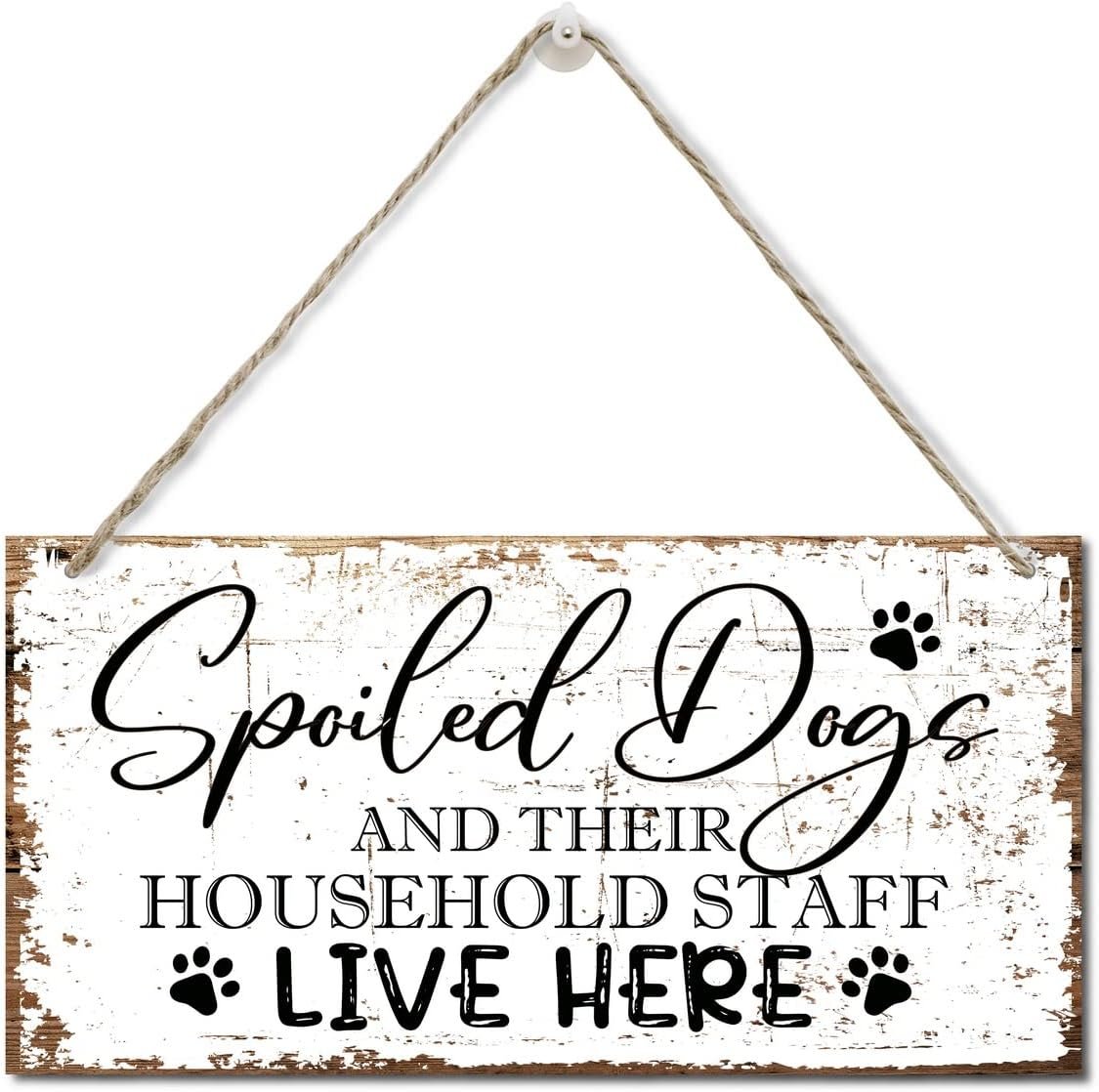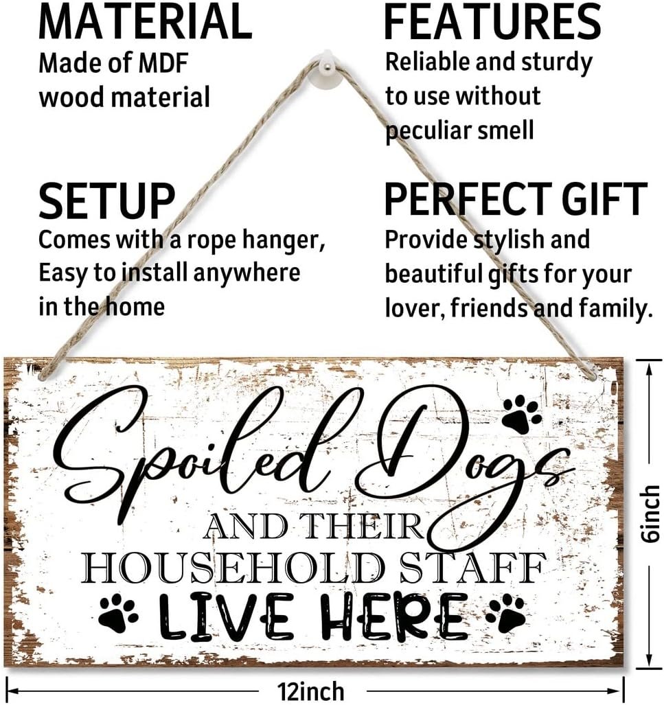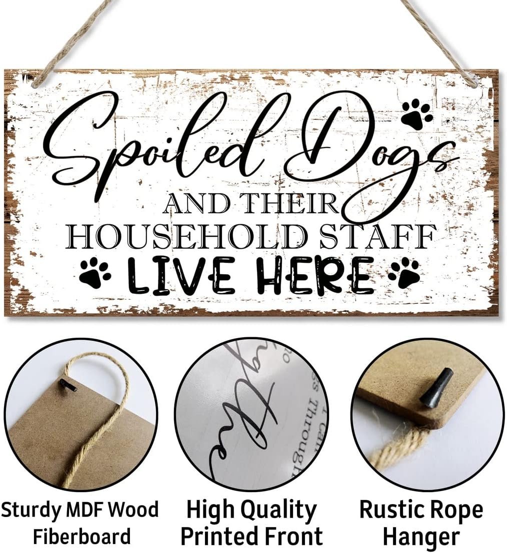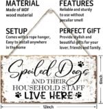 Spoiled Dogs And Their Staff Live Here Sign, Printed Wood Plaque Signs, Hanging Wood Sign Home Decor, Family Signs for Home Decor Gift, Dog Room Decoration Plaque Gifts, 12″ x 6″