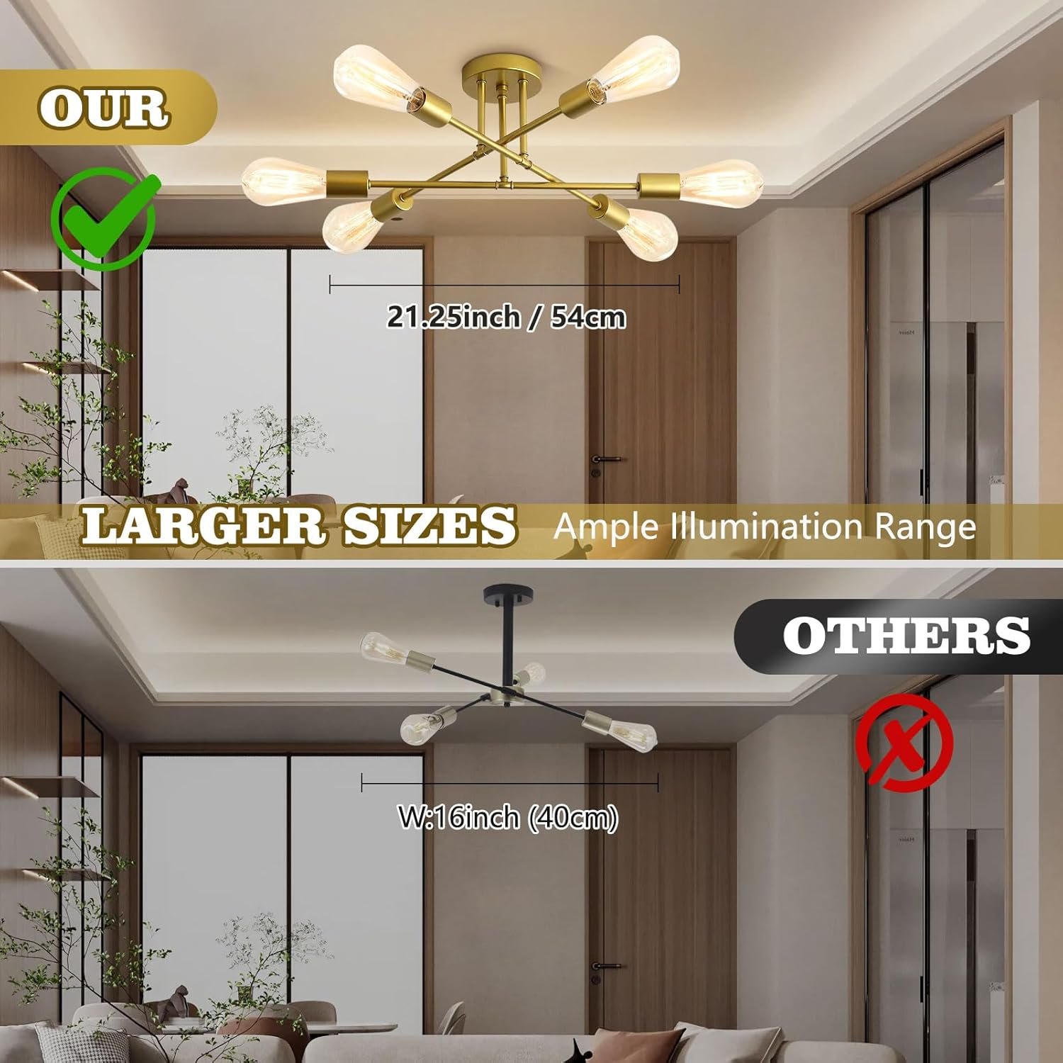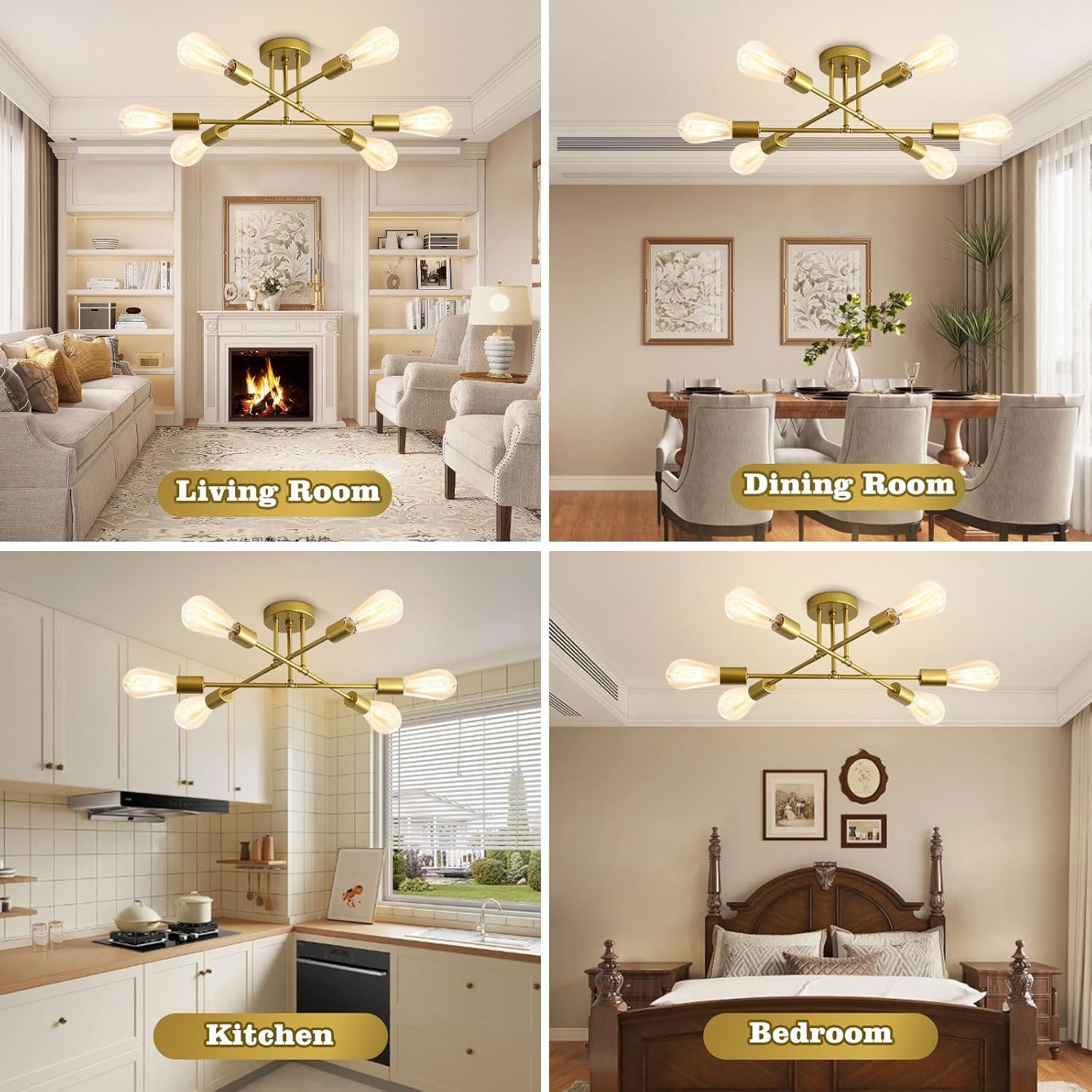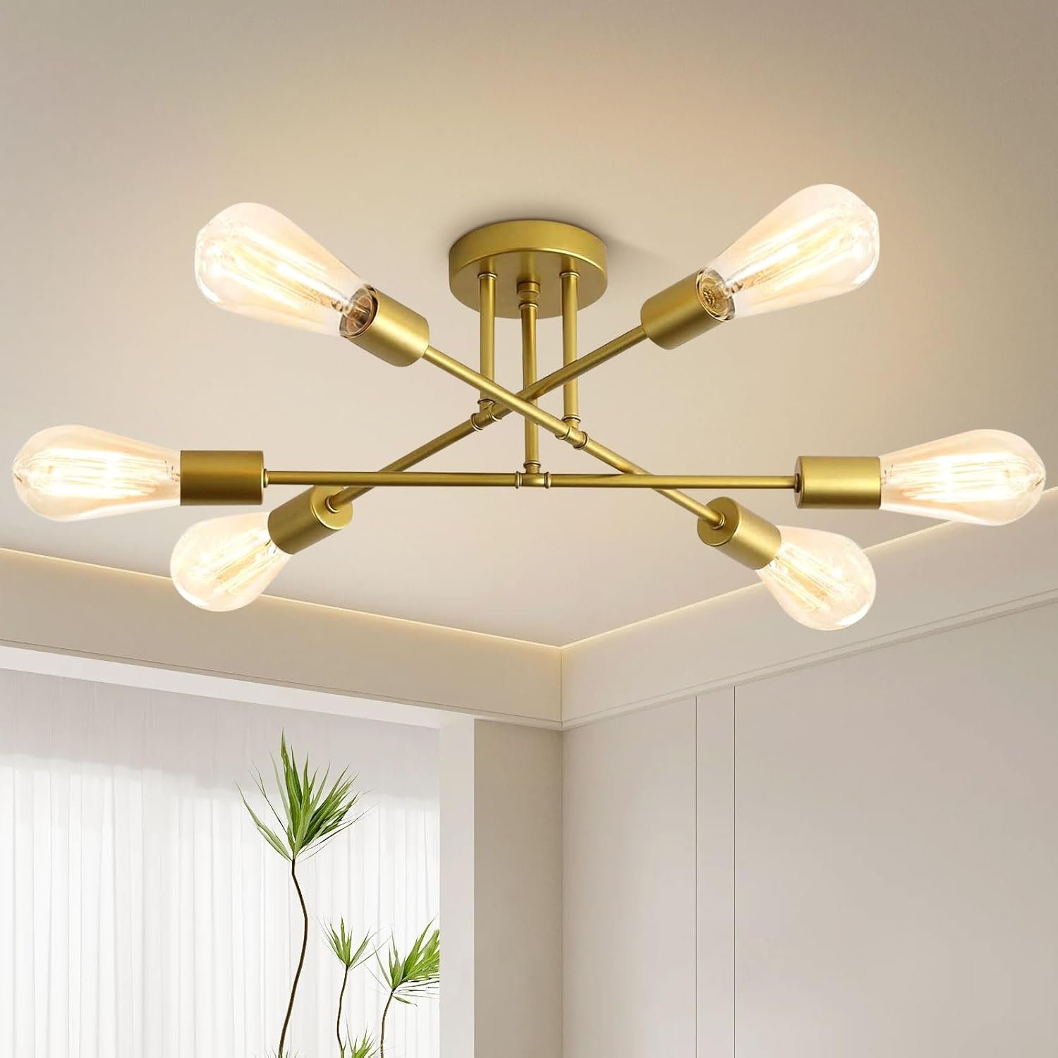 After installing the 6-light Sputnik chandelier in my dining area, I was immediately impressed by its sleek gold design, which adds a modern and luxurious touch to the space. The fixture’s size is just right, providing ample light without overwhelming the room. The warm glow it emits creates a cozy atmosphere during meals, making dinners feel more intimate and inviting.One of the standout features is its versatility. Beyond the dining room, it complements various areas in the home, from the living room to the bedroom. Its design seamlessly blends with both modern and eclectic decor, enhancing the overall aesthetic without clashing. The adjustable hanging height is a practical touch, allowing customization to fit different ceiling heights and personal preferences.Installation was straightforward, even for someone like me who’s not particularly handy. The process was quick, and the instructions were clear, making it a hassle-free experience. However, it’s worth noting that the fixture requires specific bulbs, which might be a bit pricier than standard ones. But considering the ambiance and style it brings, it’s a minor trade-off.In terms of quality, the chandelier feels sturdy and well-constructed. The gold finish has a nice sheen without being too flashy, striking a balance between elegance and subtlety. I’ve received numerous compliments from guests, with many noting how it elevates the room’s look.Overall, this 6-light Sputnik chandelier has exceeded my expectations. Its design, functionality, and quality make it a worthwhile addition to any home looking to enhance its interior lighting and decor.