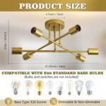 Sputnik Chandelier,6-Light Ceiling Light, Dining Room Light Fixture with E26 Bulbs,Ceiling Light Fixture, Angle Adjustable Kitchen Lighting Fixtures Ceiling, Modern Gold Chandeliers for Dining Room