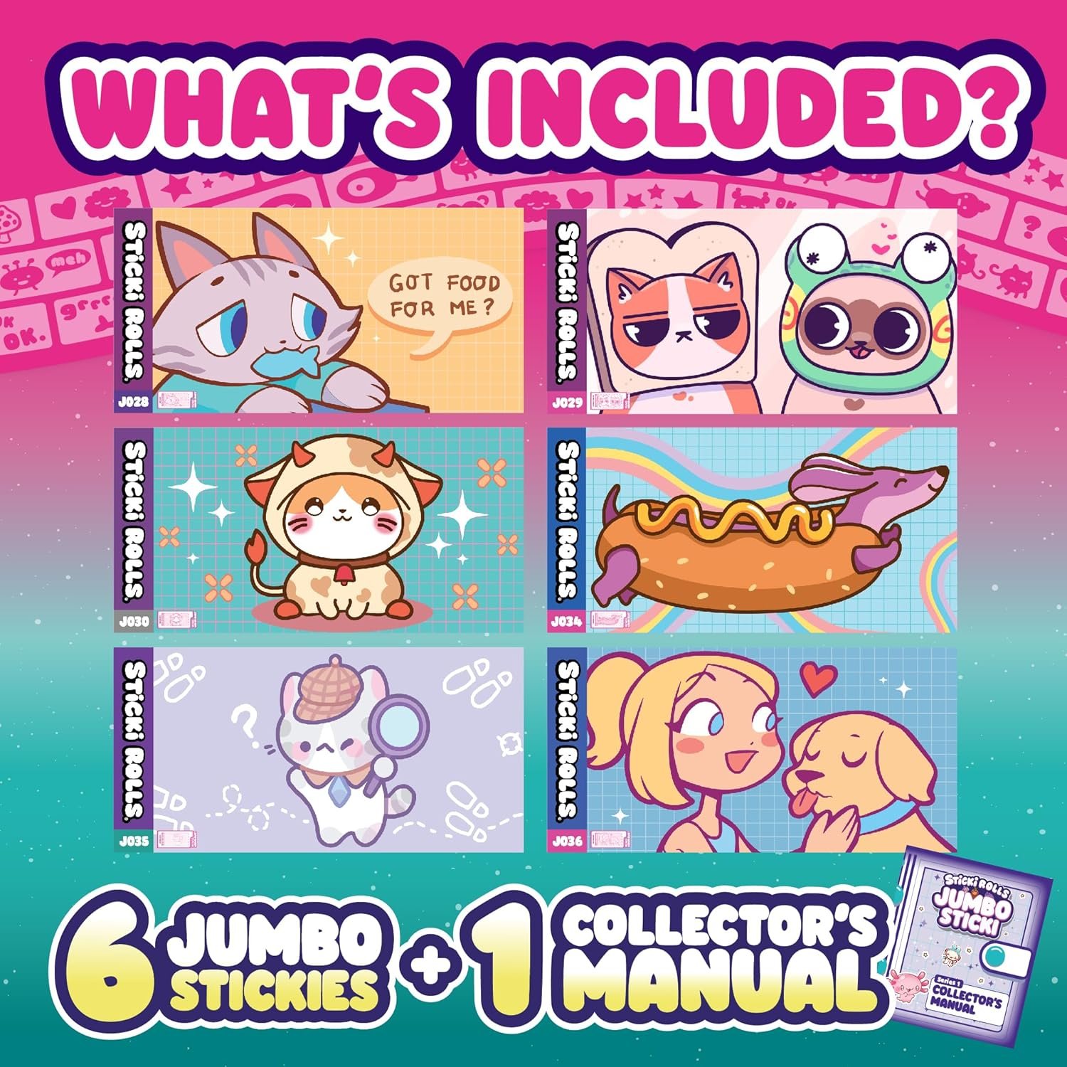 Sticki Rolls Jumbo Stickies – 6-Pack Capsule | 72 Giant Re-Stickable Foil Stickers | 12 Unique Designs Per Roll | Amazon Exclusive Collectible Wall Décor for Kids Ages 5+ (Pets 2)