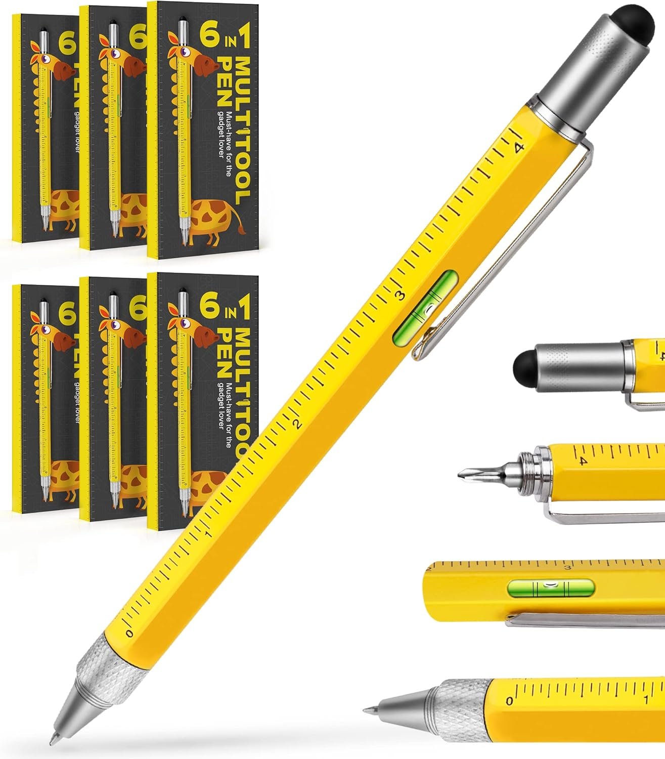 Stocking Stuffers Gifts for Men Dad-Multitool Pen Construction Tools, Pen Tool Gadget for Women Men,Gifts Ideas for Engineer Woodworkers Carpenter Stylus,Ruler,Level,Screwdriver,Ballpoint Pen 6 Pack
