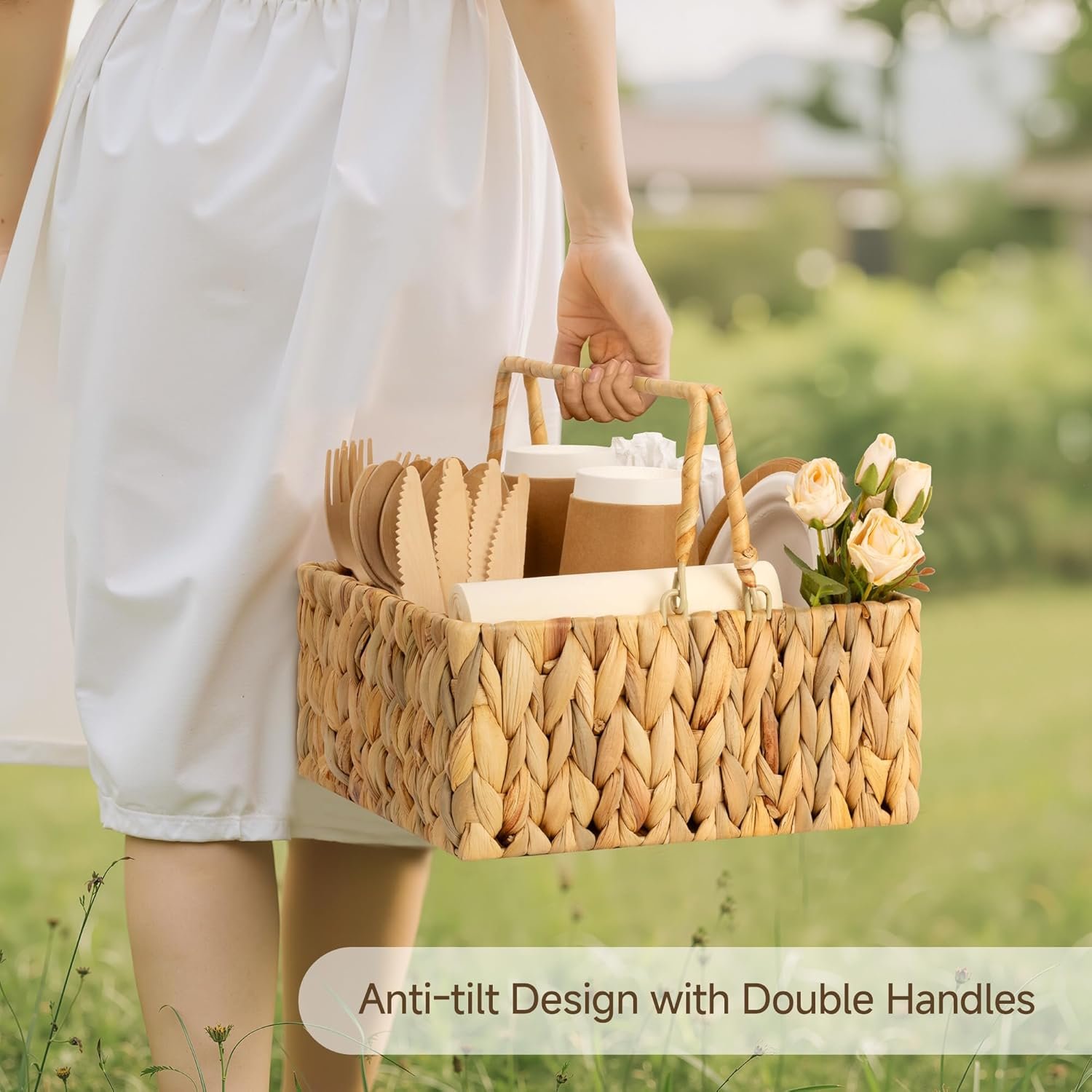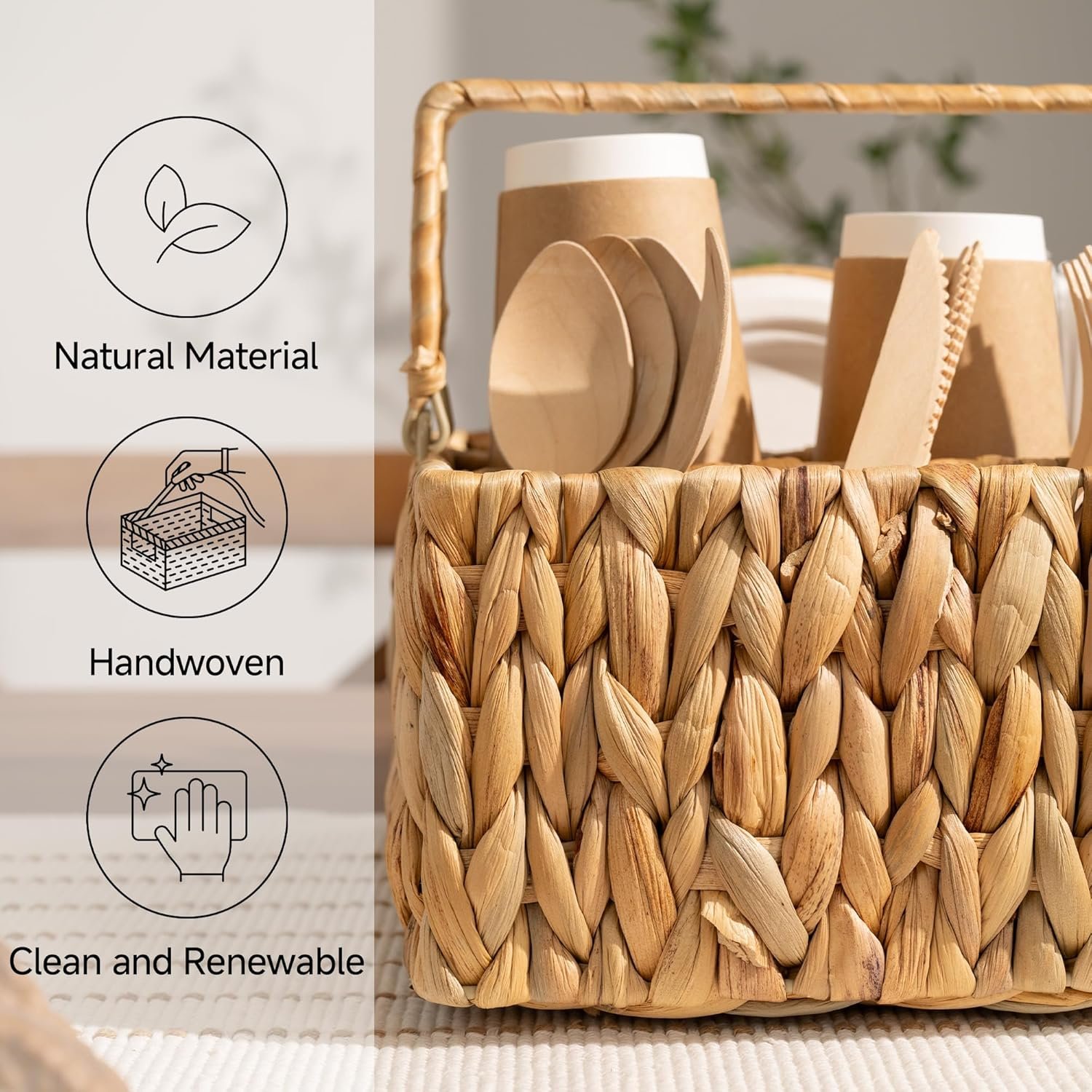 13 reviews for StorageWorks Wicker Silverware Organizer with Handle, Water Hyacinth Kitchen Utensil Holder, Large Utensil Holder for Kitchen Counter, Spoon Forks Cutlery Caddy, Paper Plate Dispenser for Countertop