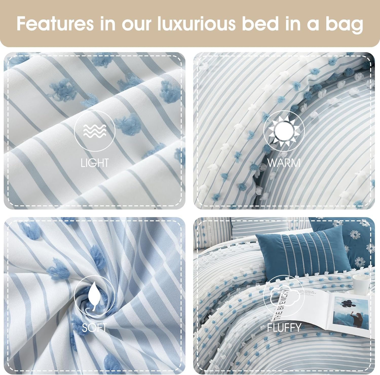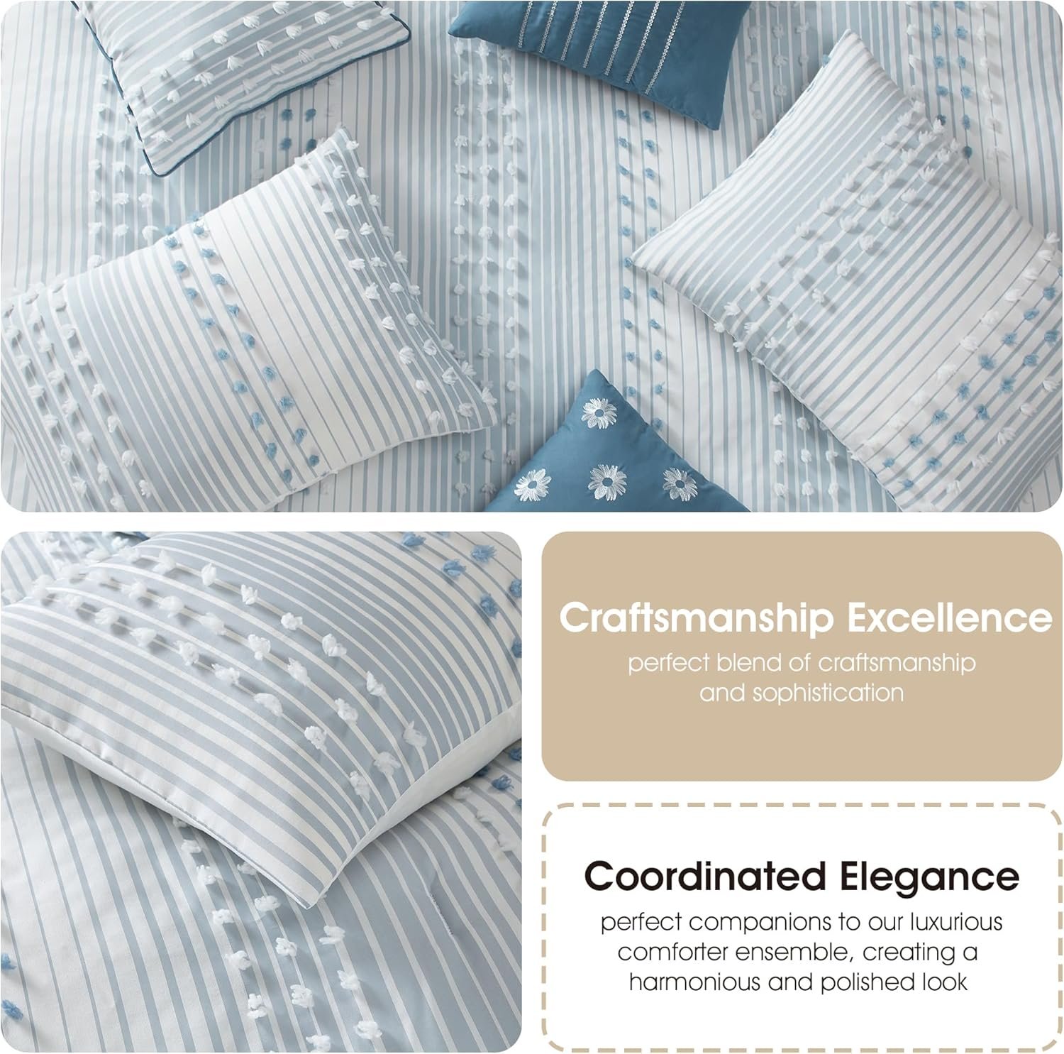 6 reviews for Stratford Park Azure Comforter Set California King Size, 7 Piece Clip & Jacquard Soft Bedding Set, All Season, Matching Pillows & Shams, Bedskirt
