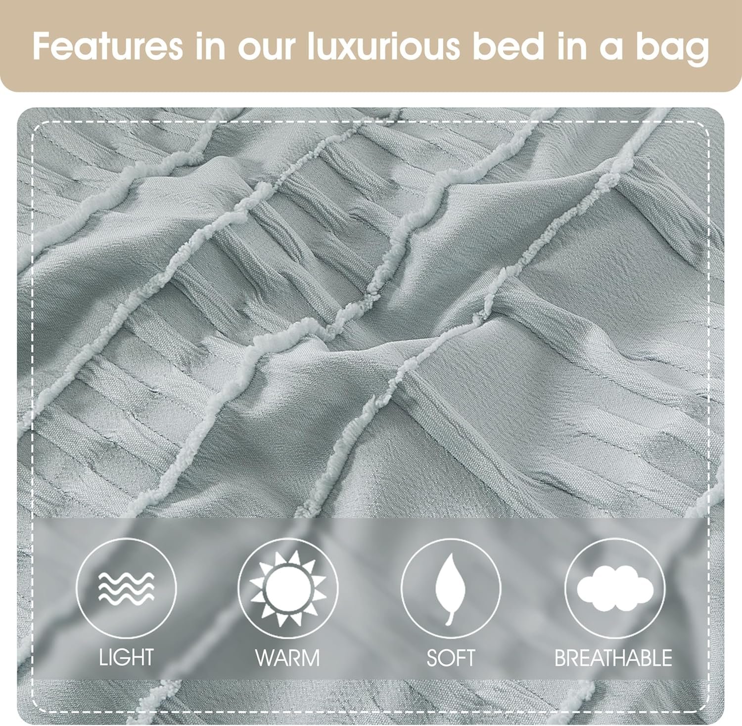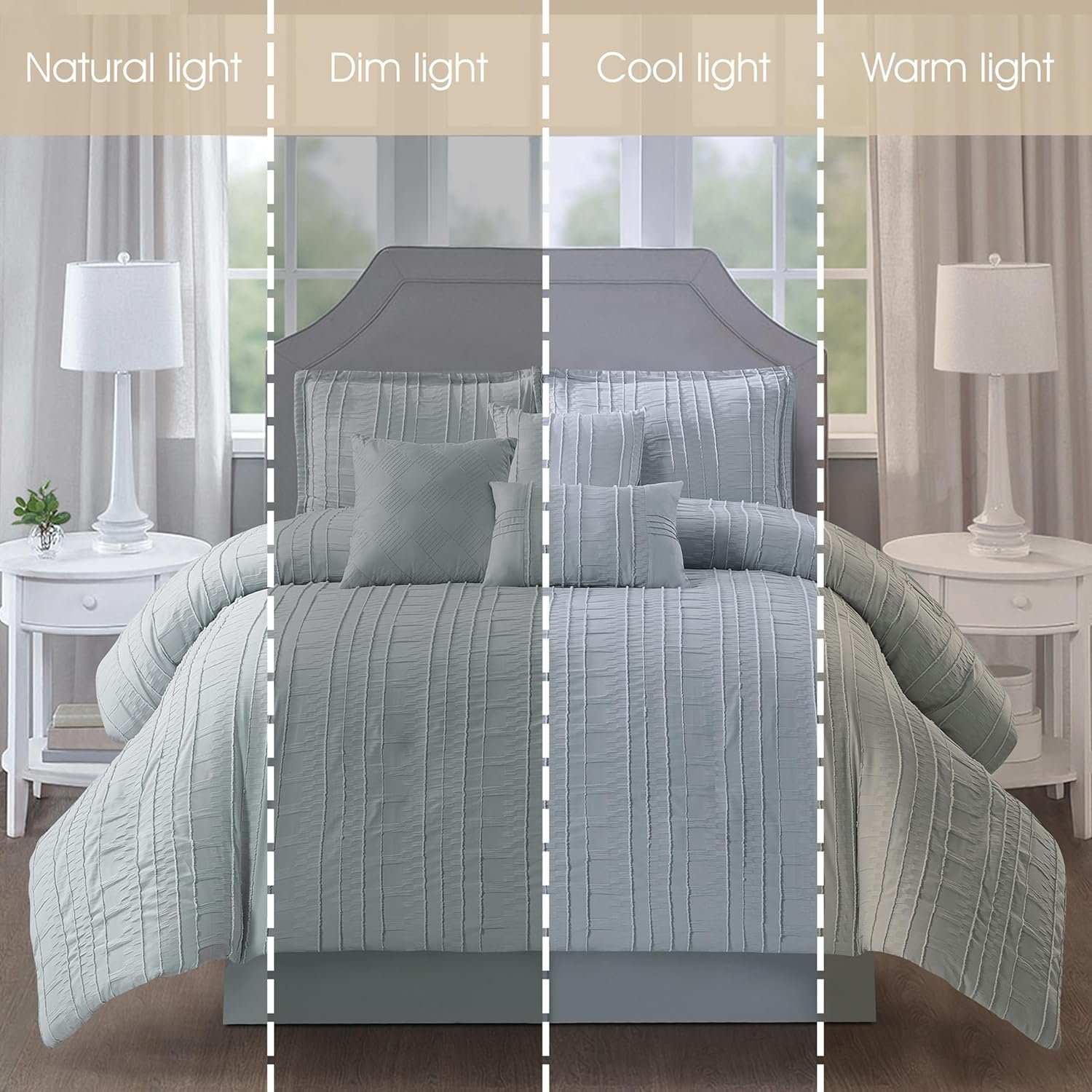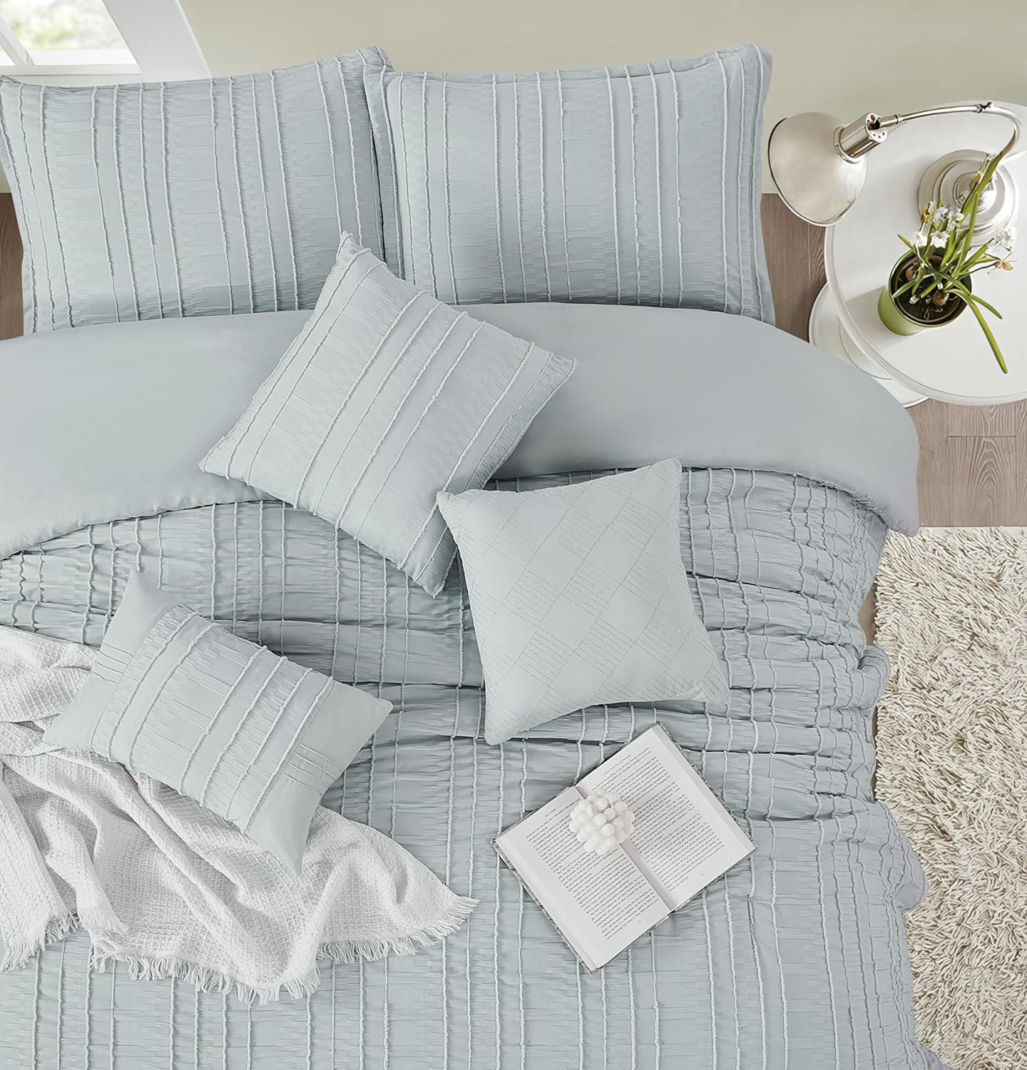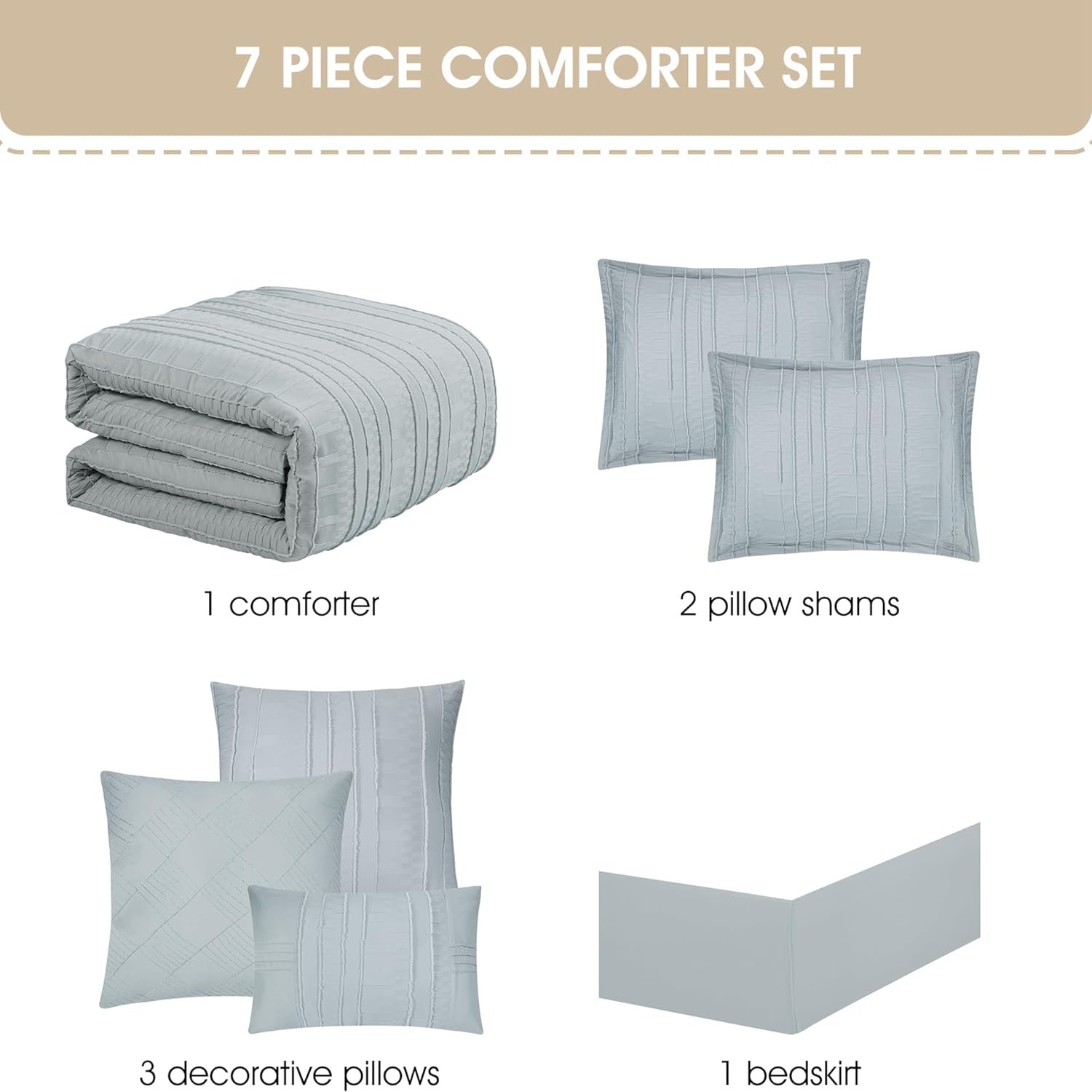 Stratford Park Grey Clip Jacquard Comforter Set Queen Size, 7 Piece Striped Bedding Set, All Season Home Decor, Matching Pillow Shams, Bedskirt, Decorative Pillows