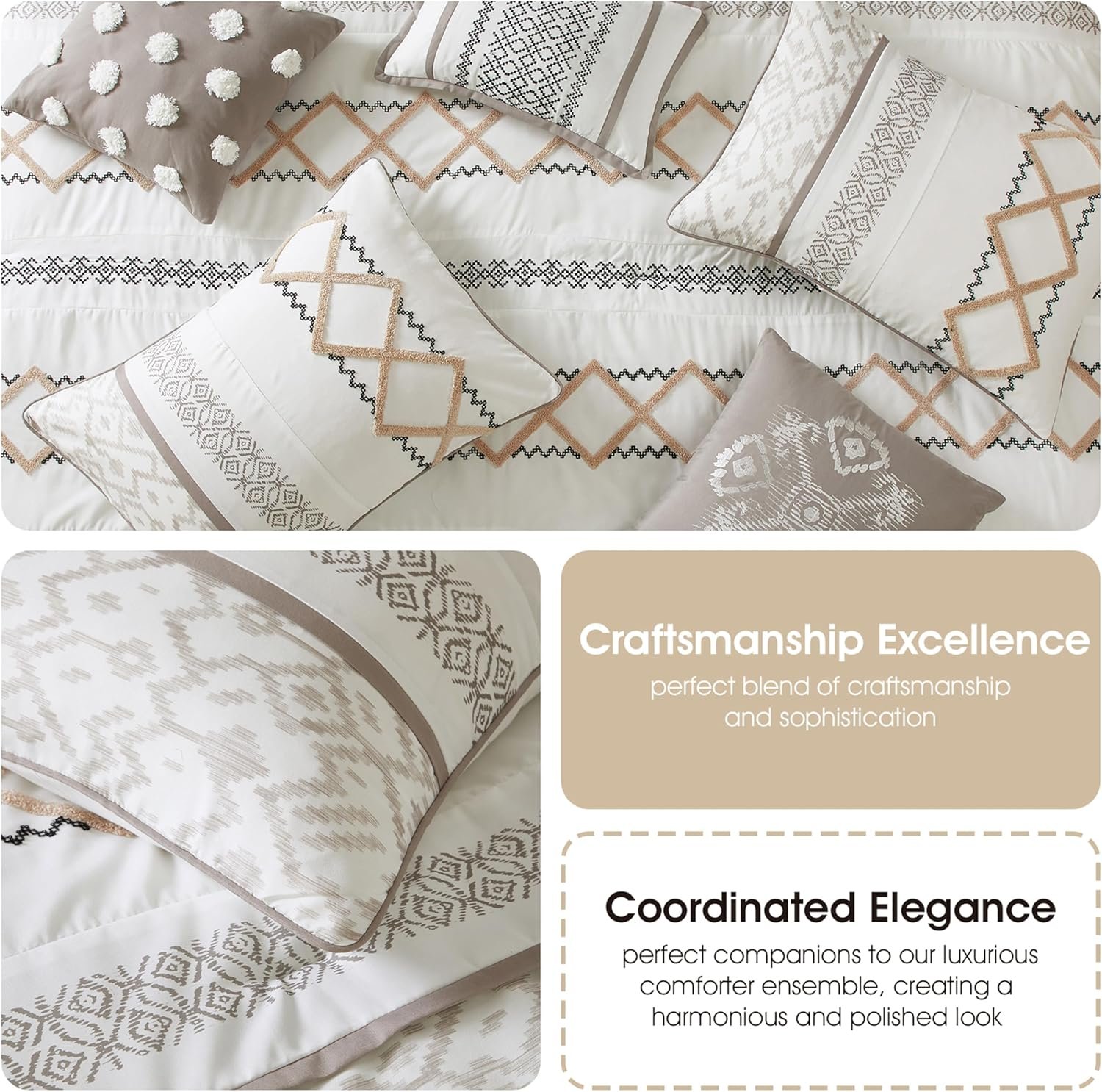 9 reviews for Stratford Park Luxury 15 Piece Cozy Comforter Set, Bed Size California King, Beige, Embroidered Bedding Sets, Premium Microfiber, All Season Home Décor