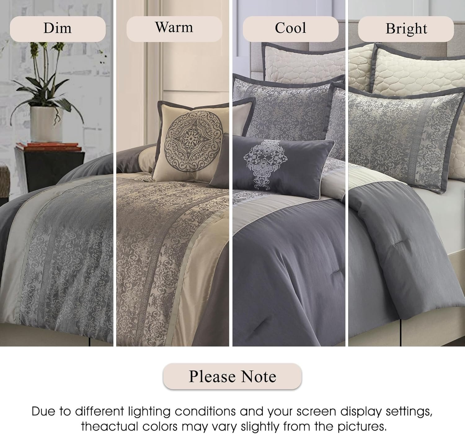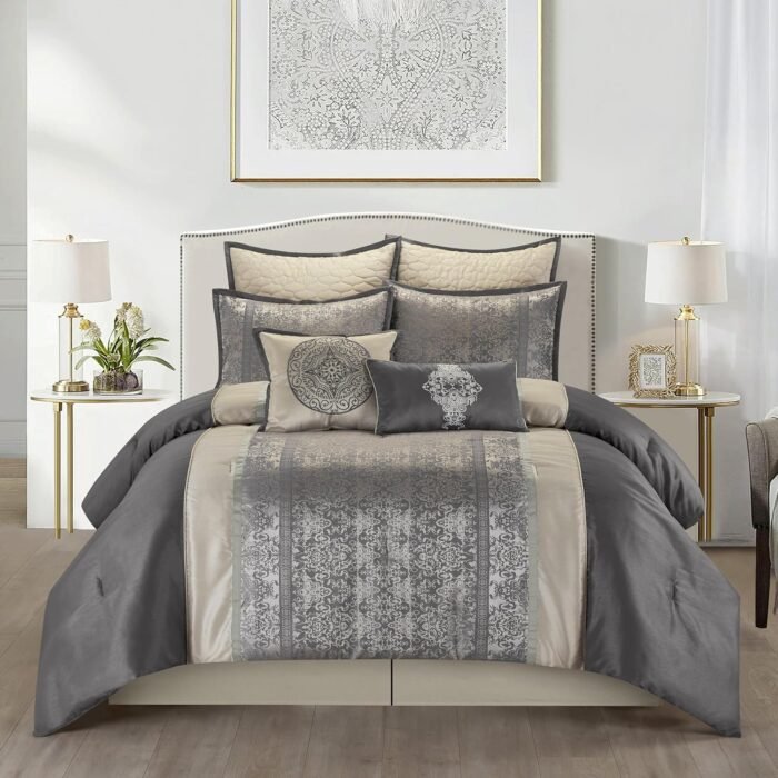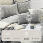 8 reviews for Stratford Park Silver/Ivory Damask Patchwork Comforters Queen Size Set, 8 Piece, Jacquard Pillow Sham, Bedskirt, Decorative Pillow, All Season Bedding Set