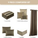 8 reviews for Stratford Park Taupe Comforter Set King Size, 9 Piece Geometric Bedding Set, Jacquard with Matching Solid Piecework, Bedskirt, Pillows & Shams, Curtains