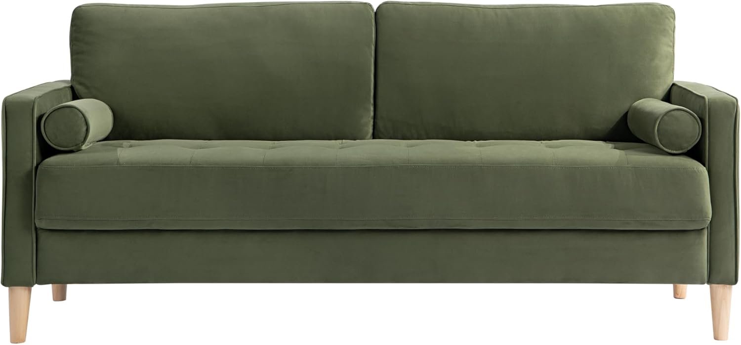 Studio Living® Lexington 75.6″ Sofa, Mid-Century Modern, Pocket Coil Comfort, Easy Assembly, Velvet Fabric, Olive Green