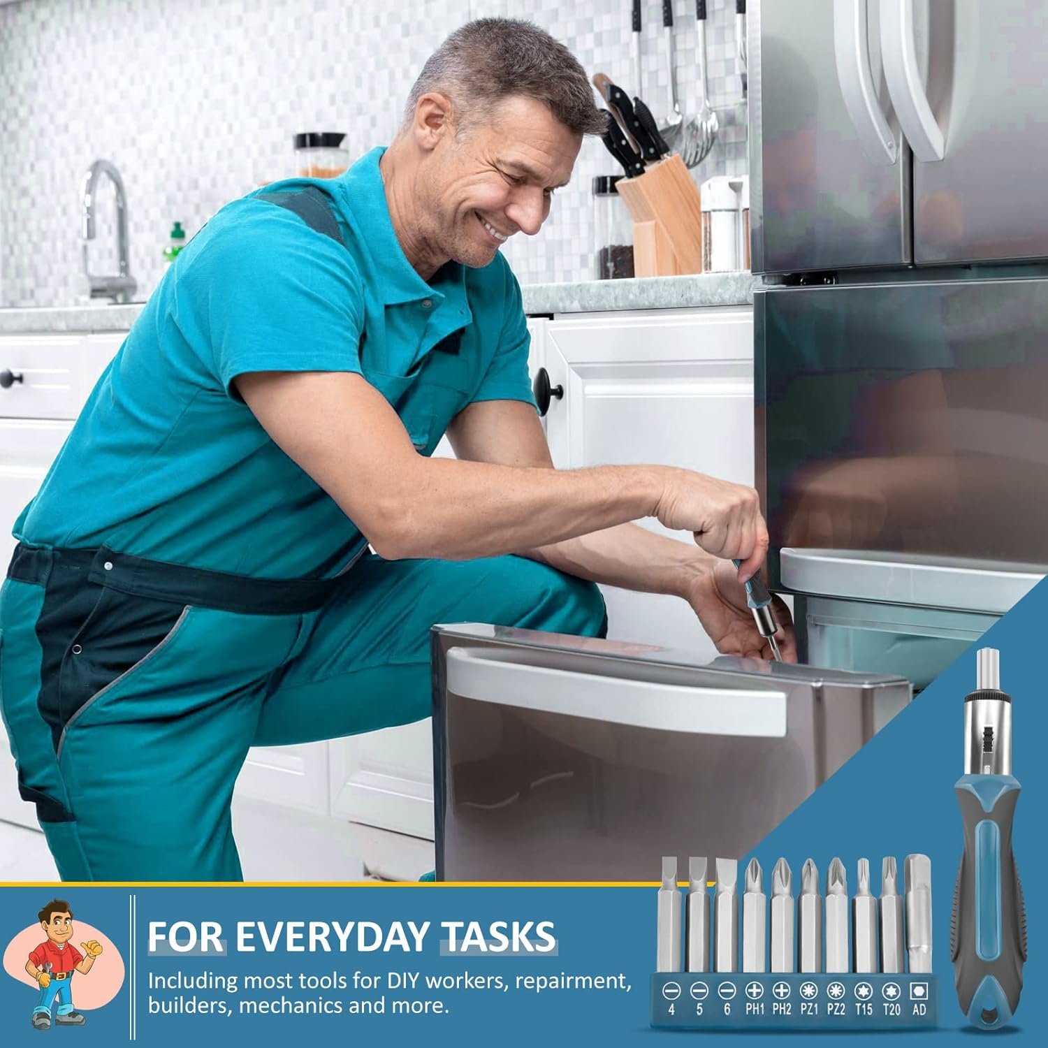 Bought this for My Son’s first apartment. It contains the perfect variety of basic tools with a few additional items that will definitely be needed in the future. Great Quality for the Money Spent!