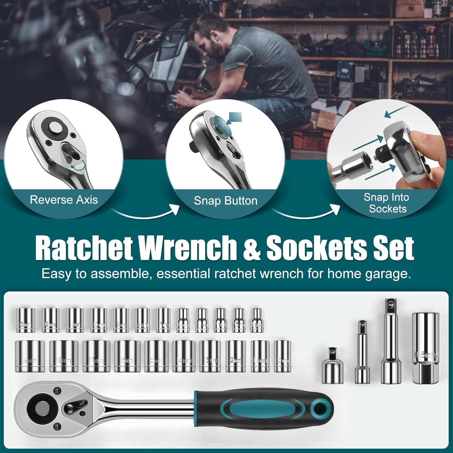 Sundpey Home Tool Kit 257-PCs – Household Basic Repair Tool Set for Men Women – General Hand Mechanic’s Tool Set & Screwdriver Set & Wrench Set & Socket & Portable Tool Box Storage Case Blue