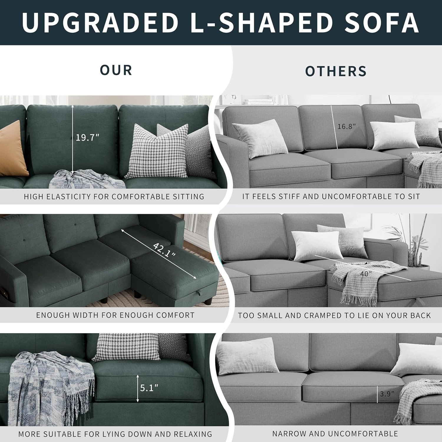 Since installing this L-shaped fabric sofa, my daily quality of life has significantly improved. Sitting on the sofa to relax after work every day has become one of the most anticipated moments for me. The height and depth of the sofa are just right, making it very comfortable whether sitting upright or lying lazily. Moreover, due to its L-shaped design, even if guests come to the house, it can easily accommodate more people to chat and communicate together.