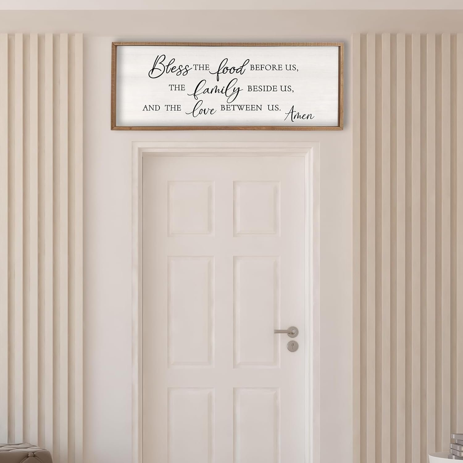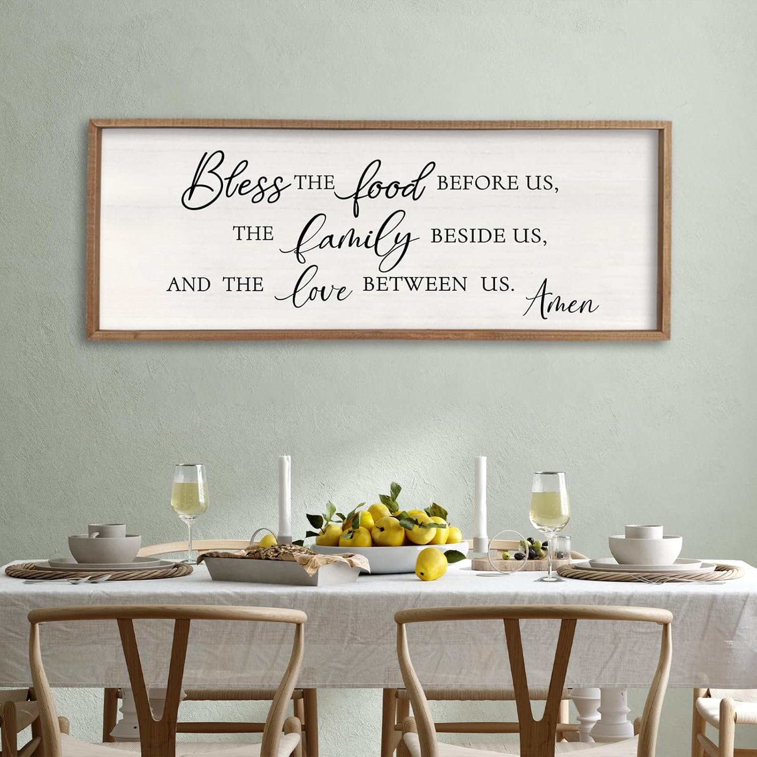 9 reviews for Surfapans Bless the Food Before Us Wall Decor, 40″X15″ Farmhouse Dining Room Family Kitchen Sign, Christian Bible Verse Scripture Vintage Home Framed Wood Wall Art(Wood White)
