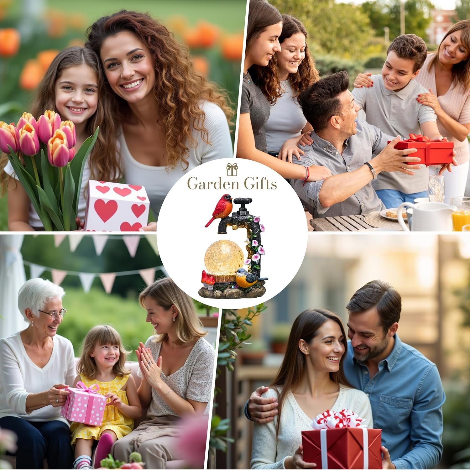 TERESA’S COLLECTIONS Garden Decor, Cardinal Garden Decor, Cute Cardinal and Faucet and Solar Light Glass Ball, Waterproof Resin Garden Statues, Cardinal Gifts, Birthday Gifts for Women Mom, 6″