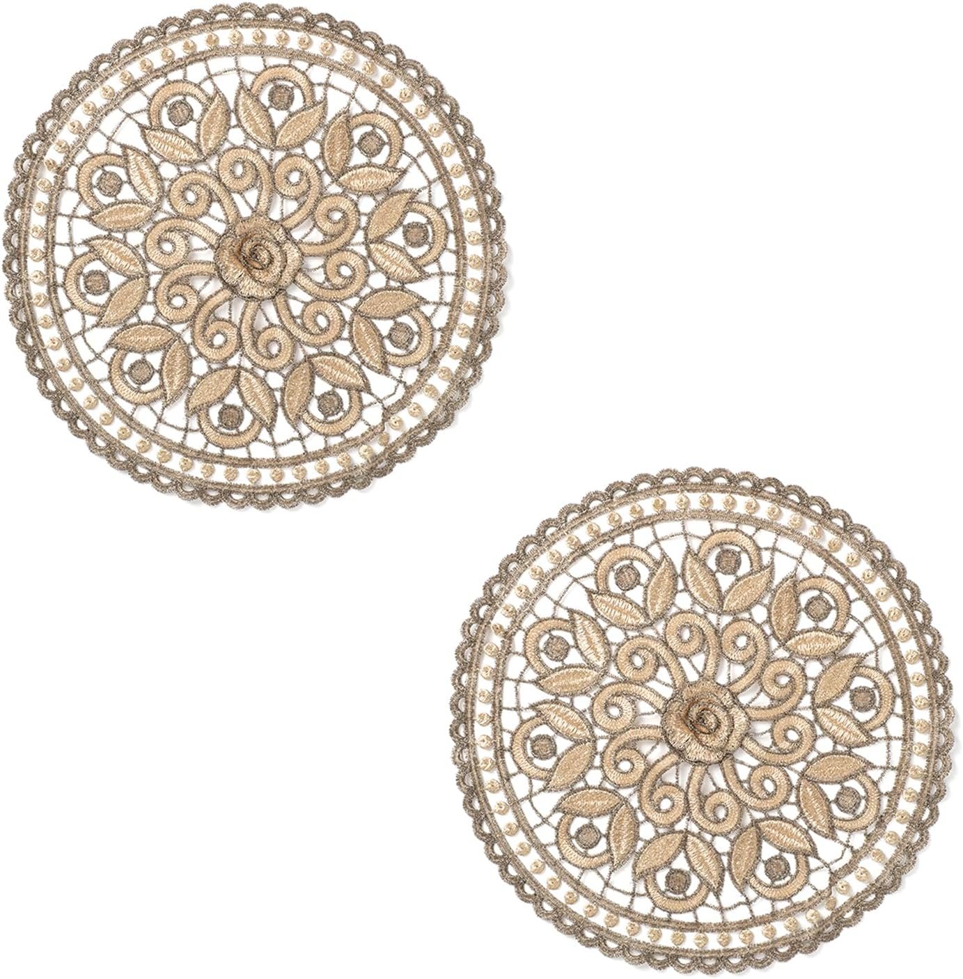 8 reviews for TEYOON 2 Pieces 10 Inch Doilies Crochet Handmade Coasters Round Placemat Rustic Table Doilies Decors for Kitchen Dining Room Party Dressers Dream Catcher Decoration, Golden New Sprout