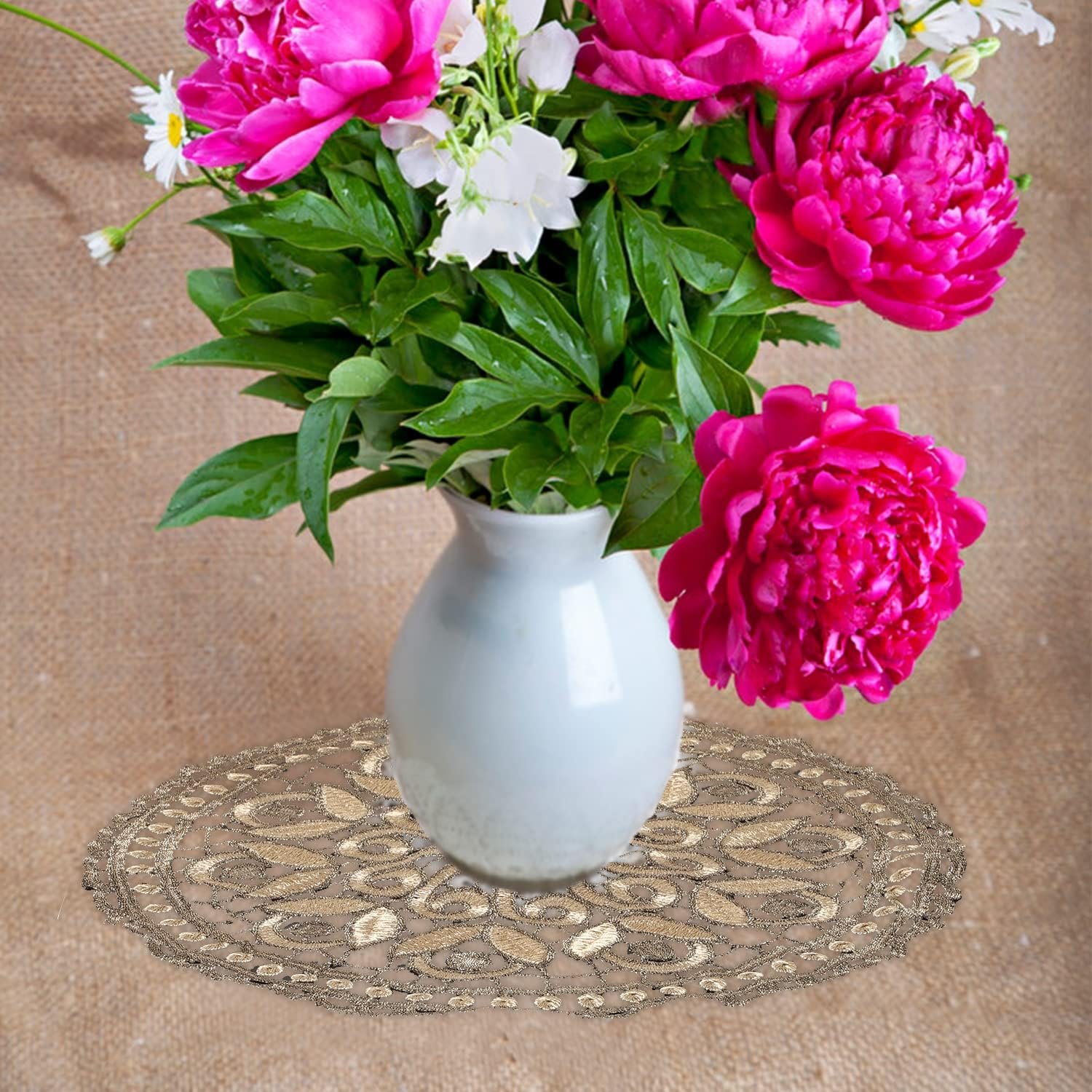 The doilies are really beautiful and well-made and I was happier than expected for an excellent price. But I had to lower the stars because they arrived late and they were in such a small box that they arrived wrinkled. It will be difficult and time-consuming to get the wrinkles out and I have to wonder why they didn’t use a better box so they would not arrive crumpled?