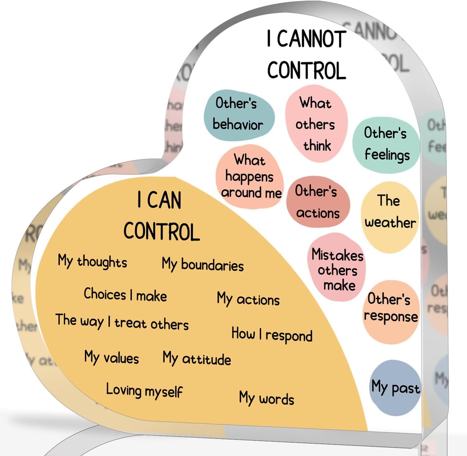 Things I Can Control Mental Health Decor, Acrylic Heart Gifts Mindfulness Decor for Therapy Office , School Counselor Sign Therapist Office Art Decorations for Therapist Office Living Room Bedroom