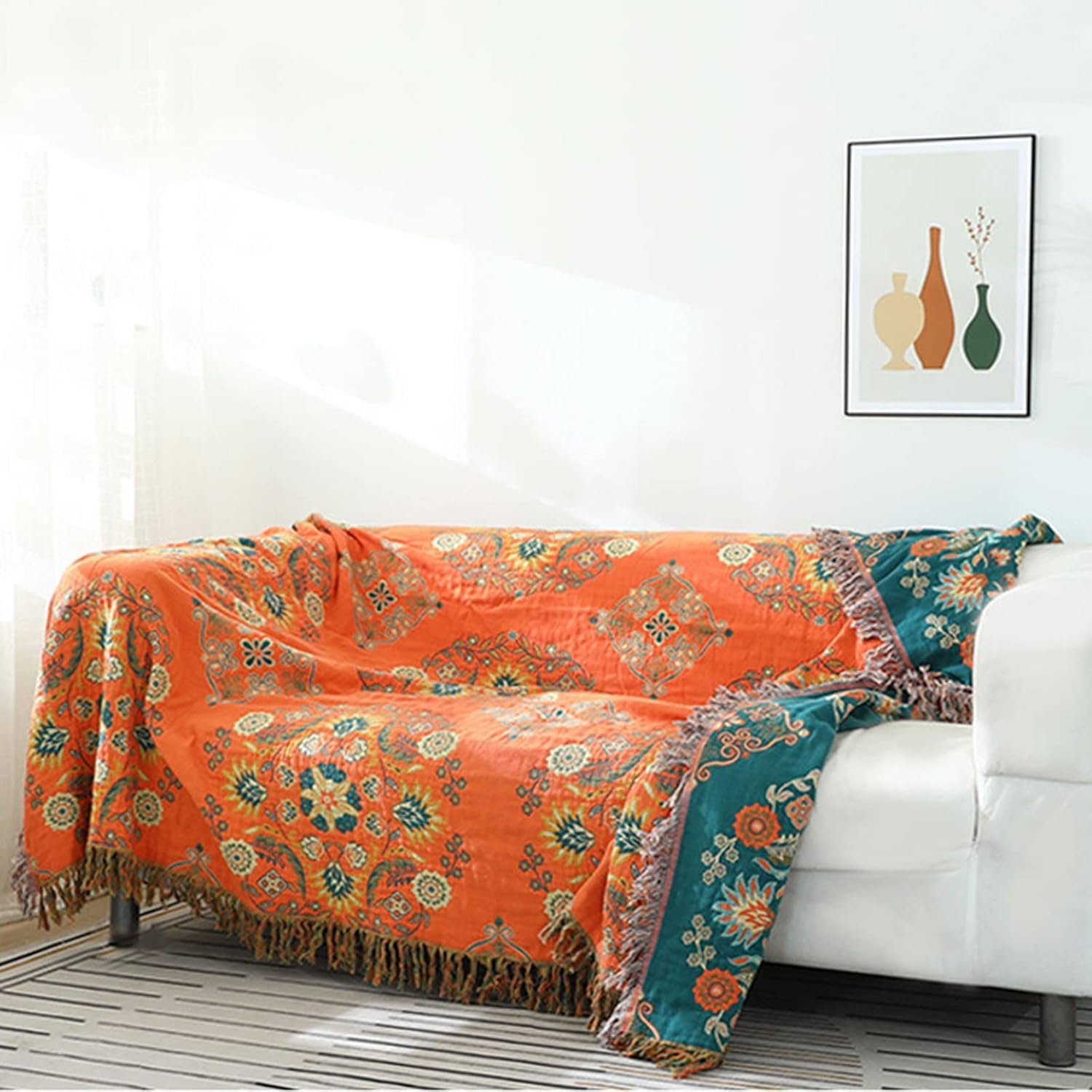 This blanket is absolutely beautiful. Works on your bed or couch. The fact that it’s reversible makes it even better. I’ve washed it twice and it has held up wonderfully.Get it! 🙂