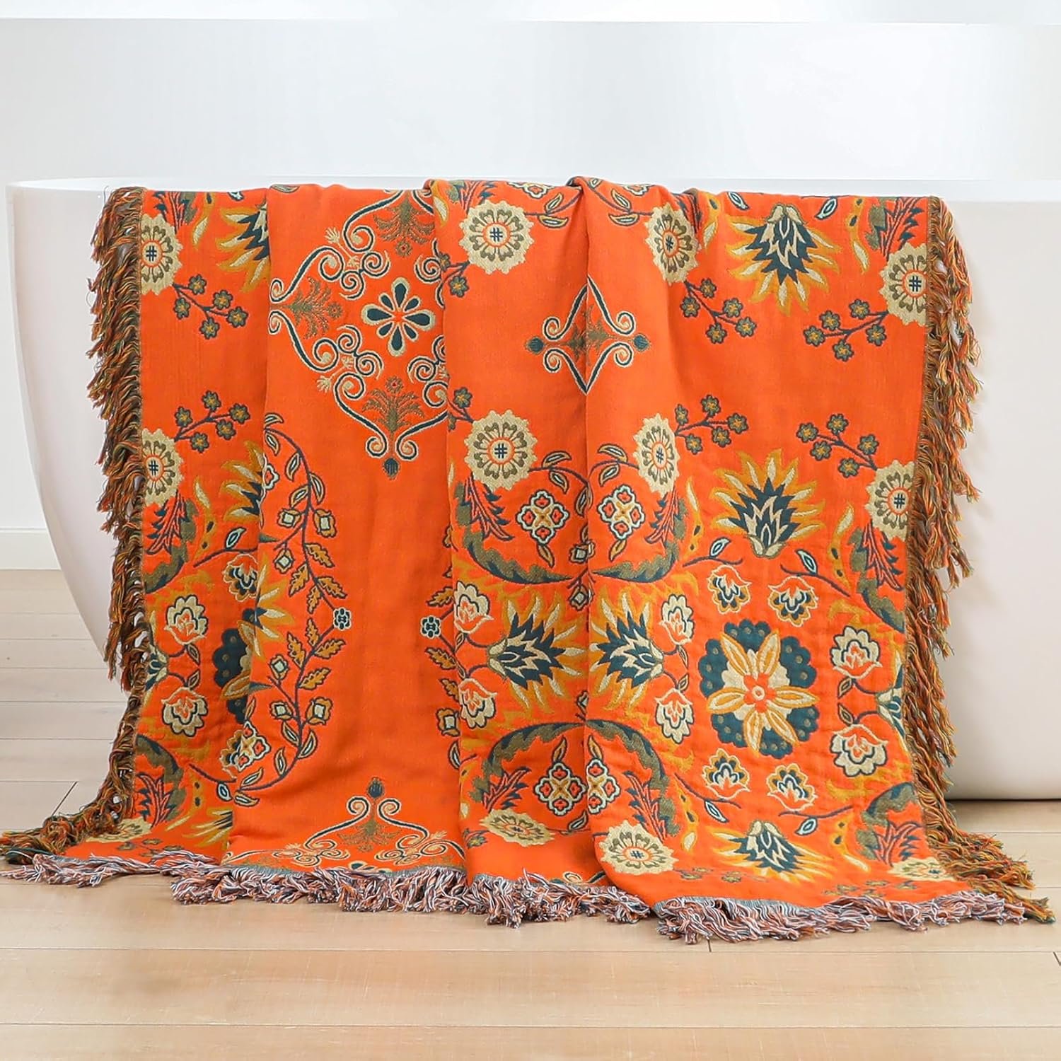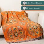 13 reviews for Throw Blanket for Couch Bed Chair,100% Cotton Soft Lightweight Blanket Rustic Quilt -Orange Floral Printed Farmhouse Decor Bed All Season Blankets,90″×98″