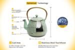 13 reviews for TOPTIER Japanese Teapot with Stainless Steel Infuser, Cast Iron Tea Kettle Stovetop Safe, Leaf Design Coated with Enameled Interior for 32 Ounce (950 ml), Light Green
