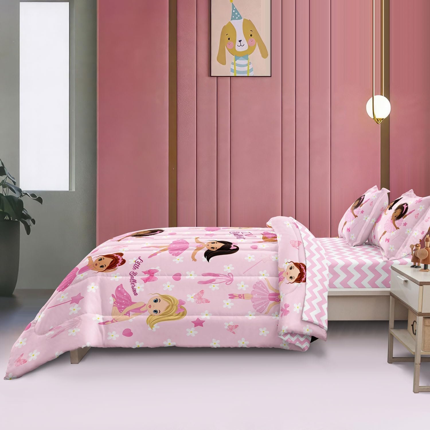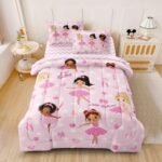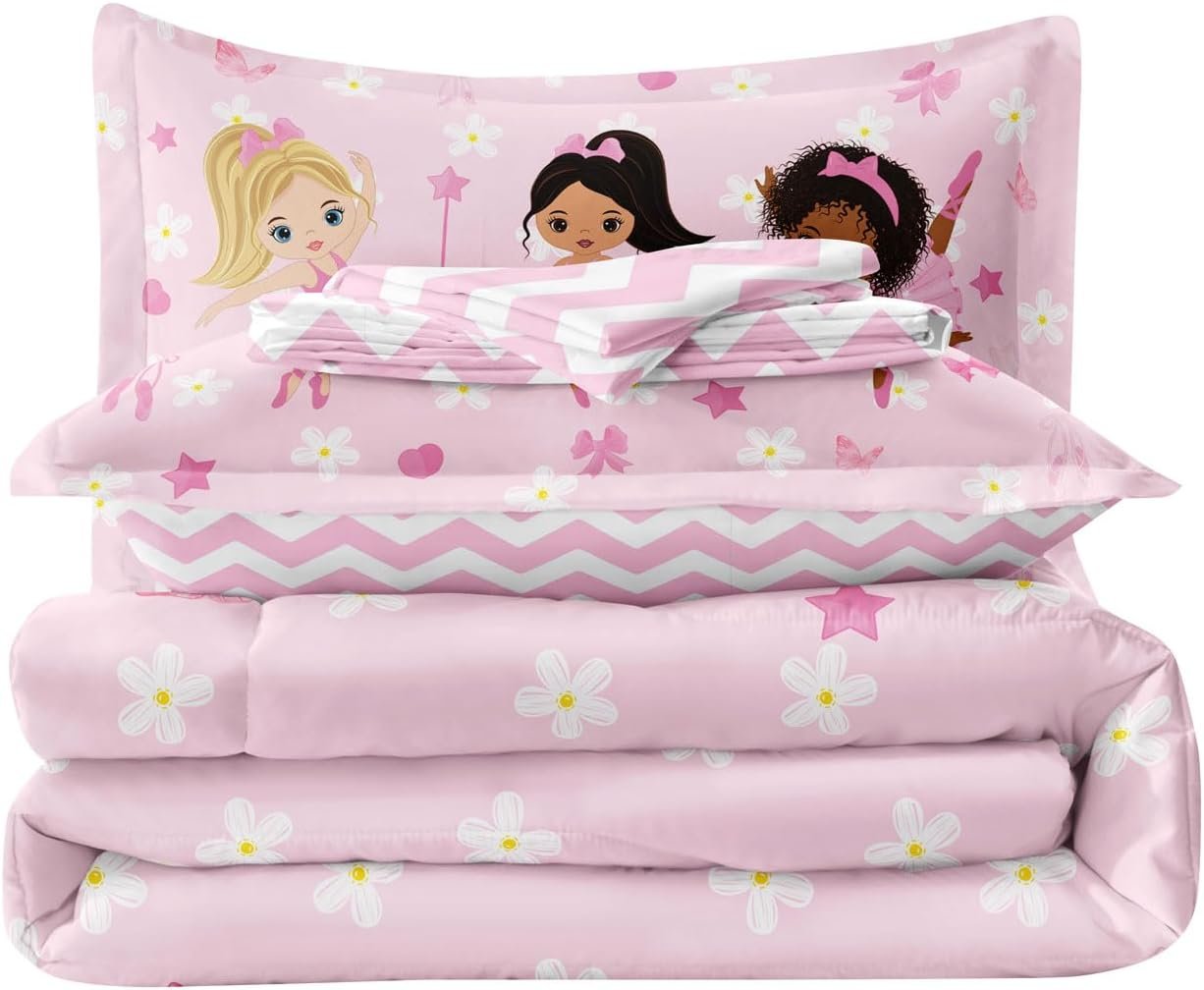 13 reviews for Twin Bedding Set for Girls Kids 5 Pieces Comforter Sets Bed in a Bag Pink Floral Ballerina Bedding Comforter Sheet Set Cute Bedroom Decor