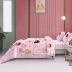 The material is high-quality, and it fits great on a twin bed. Its thickness is perfect to keep my daughter sleeping comfortably at night. After a few washes it still looks and feels fantastic. I’m so pleased with this purchase and my daughter loves it!