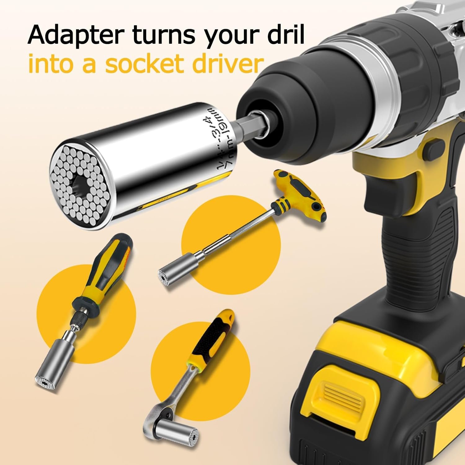 Universal Socket Self-Adjusting Wrench Set (7-19mm) – Fits Standard 1/4”-3/4”,Super Socket with Power Drill Adapter for Wrench Ratchet & Power Drill– Ideal Tool Gift for Men