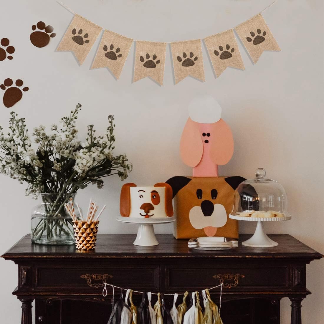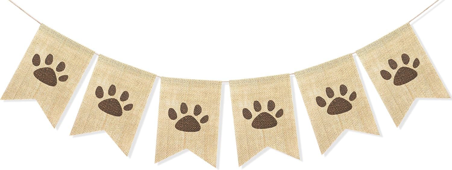 Uniwish Dog Paw Print Banner Puppy Animal Theme Birthday Party Decorations, Rustic Burlap Bunting Pet Party Supplies Garland Photo Props
