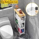 11 reviews for Utility Slim Storage Cart, 4 Tier Small Rolling Kitchen Laundry Room Cart with Wood Top, Metal Narrow Bathroom Storage Cabinet Mobile Shelf Unit Organizer Trolley with Handle for Narrow Space