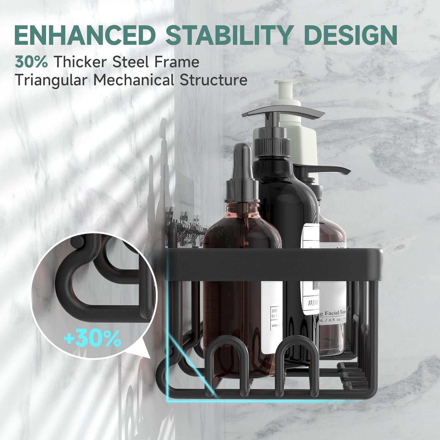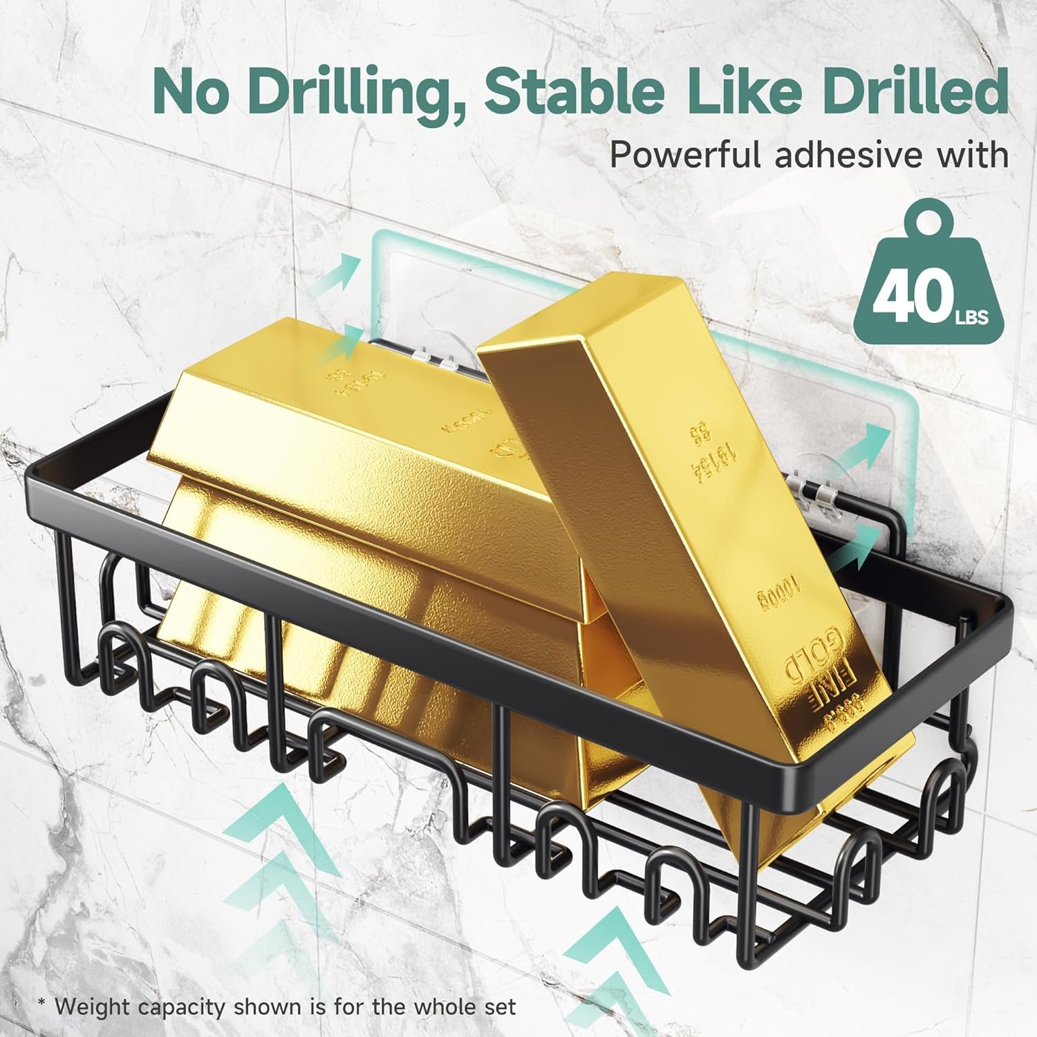 I absolutely love this shower caddy set! The installation was super easy no drilling required, just stick on the adhesive and it holds really strong. I was worried it might not support heavier items, but it easily holds my large shampoo, conditioner, and body wash bottles without any slipping or sagging.The different sized shelves are so convenient. I like that it comes with multiple pieces so I can organize everything neatly from soaps and lotions to razors and even small towels. It really freed up space in my shower and makes everything look much more organized and modern.The black finish looks sleek and stylish, plus it’s truly rustproof and waterproof. I’ve had it in my shower for a while now and it still looks brand new. Definitely a great buy for the price and quality.Highly recommend if you want something durable, functional, and easy to set up!