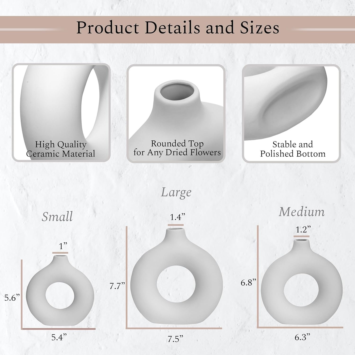 8 reviews for VELOVA Set of 3 White Ceramic Vase with 65 PCS Dried Pampas Grass Flowers Aesthetic Boho Modern Small Round Cute Vases for Decor Living Room Coffee Table Shelf Bedroom Office Desk Home Gifts Women Mom