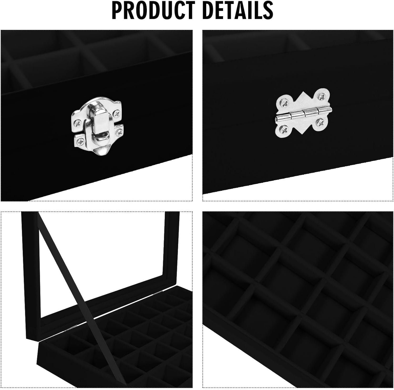 I bought this, not knowing if I would like it or not the velvet texture is very nice and the glass window is excellent. You can look through. Choose what you want and the separators are great as well. All in all it’s a good product.