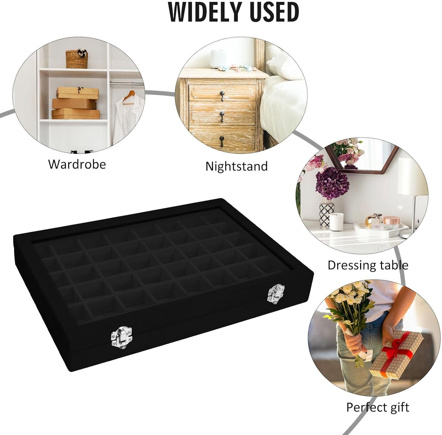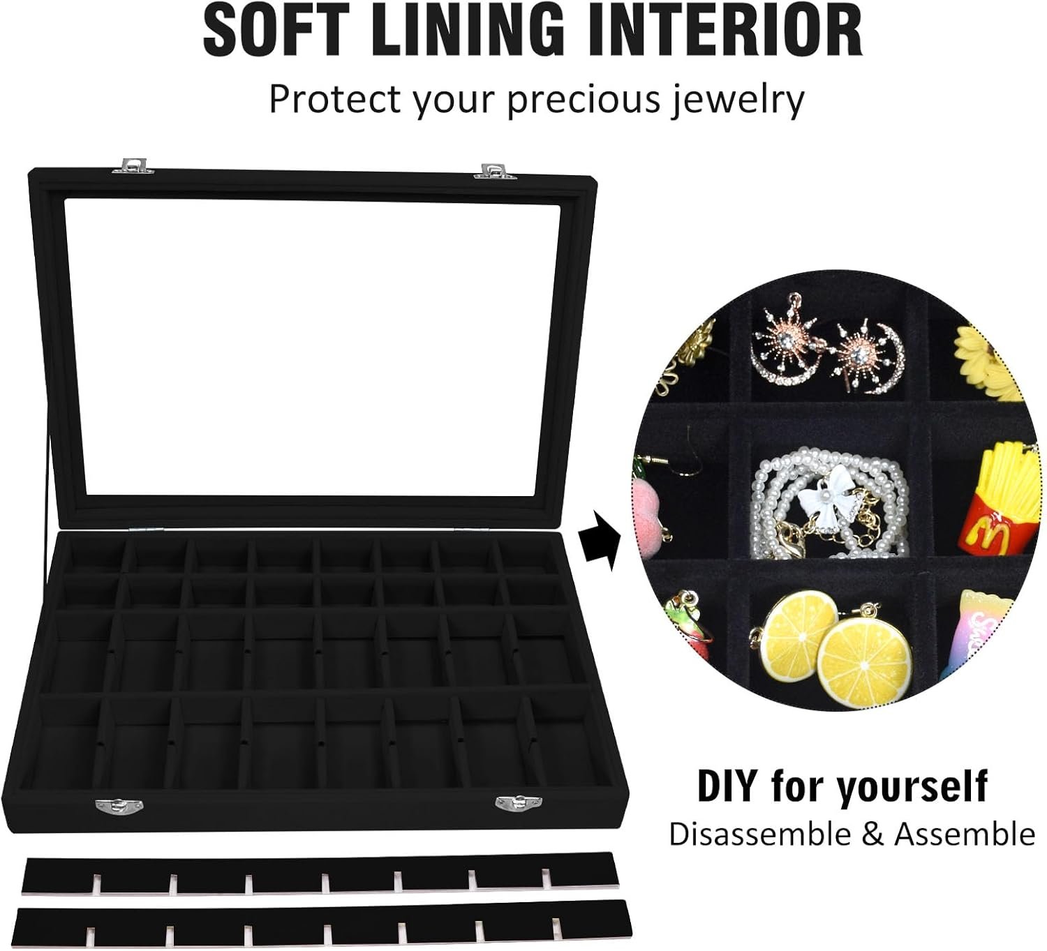 9 reviews for Velvet Jewelry Tray 48 Compartments Jewelry Display Organizer with Transparent Cover Rings, Earrings, Necklaces, Pendants Storage Box for Girls, Wives, Mothers, Women
