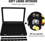 Velvet Jewelry Tray 48 Compartments Jewelry Display Organizer with Transparent Cover Rings, Earrings, Necklaces, Pendants Storage Box for Girls, Wives, Mothers, Women