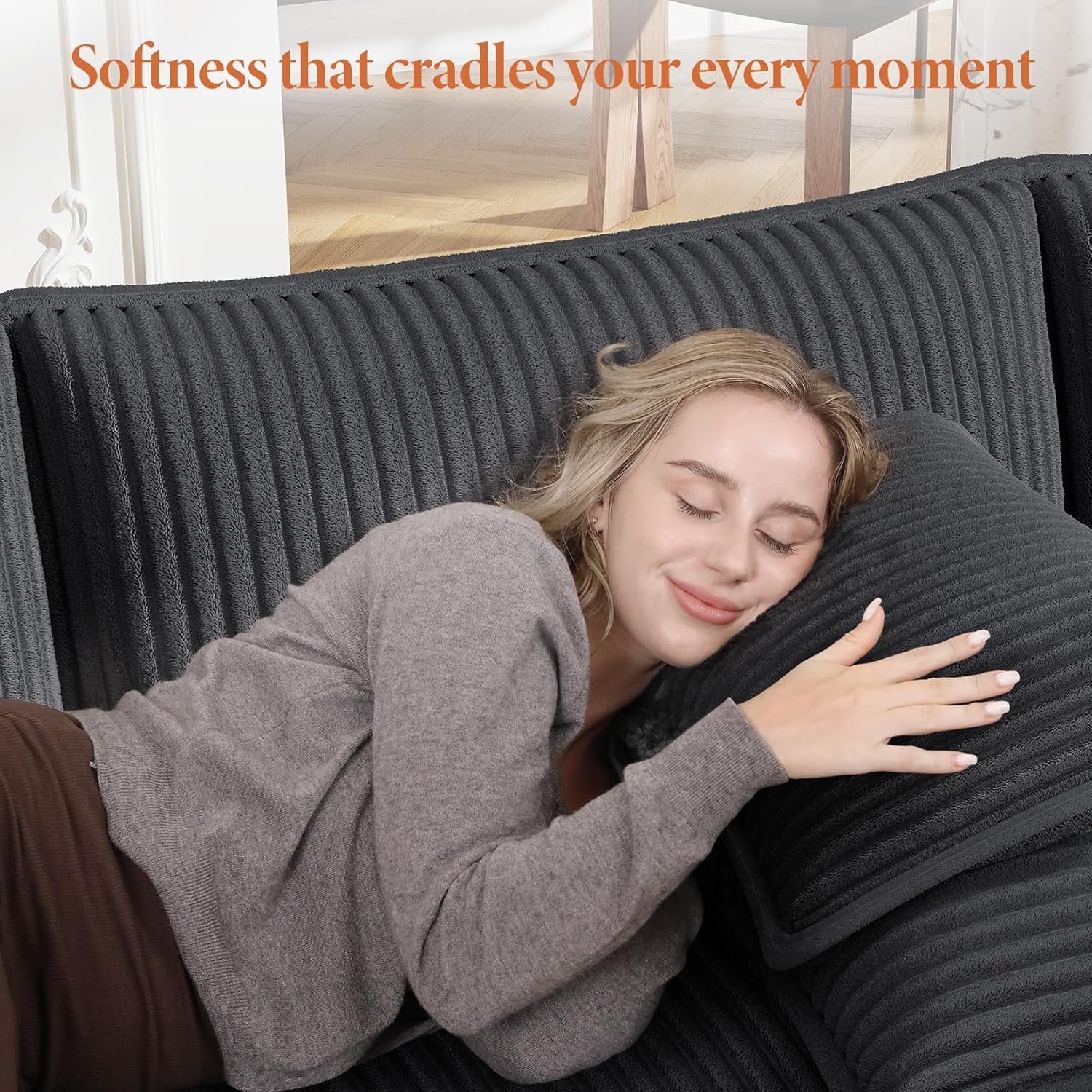 8 reviews for Vesgantti 143″ L Shaped Modular Sectional Sofa, Comfy Corduroy Upholstered Modular Sectional Couches for Living Room, Modern Cloud Couch with Ottoman Deep Seat, Dark Grey