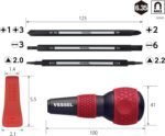 Buen desarmador, pero no se siente tan premium, elEncastre no es metálico y crea la sensación de no sé muy durable, esperemos ver su desempeño. Al meter la barra del desarmador no se escucha que atore, queda justo pero no se siente que se sujete por algún imán o que haga click.